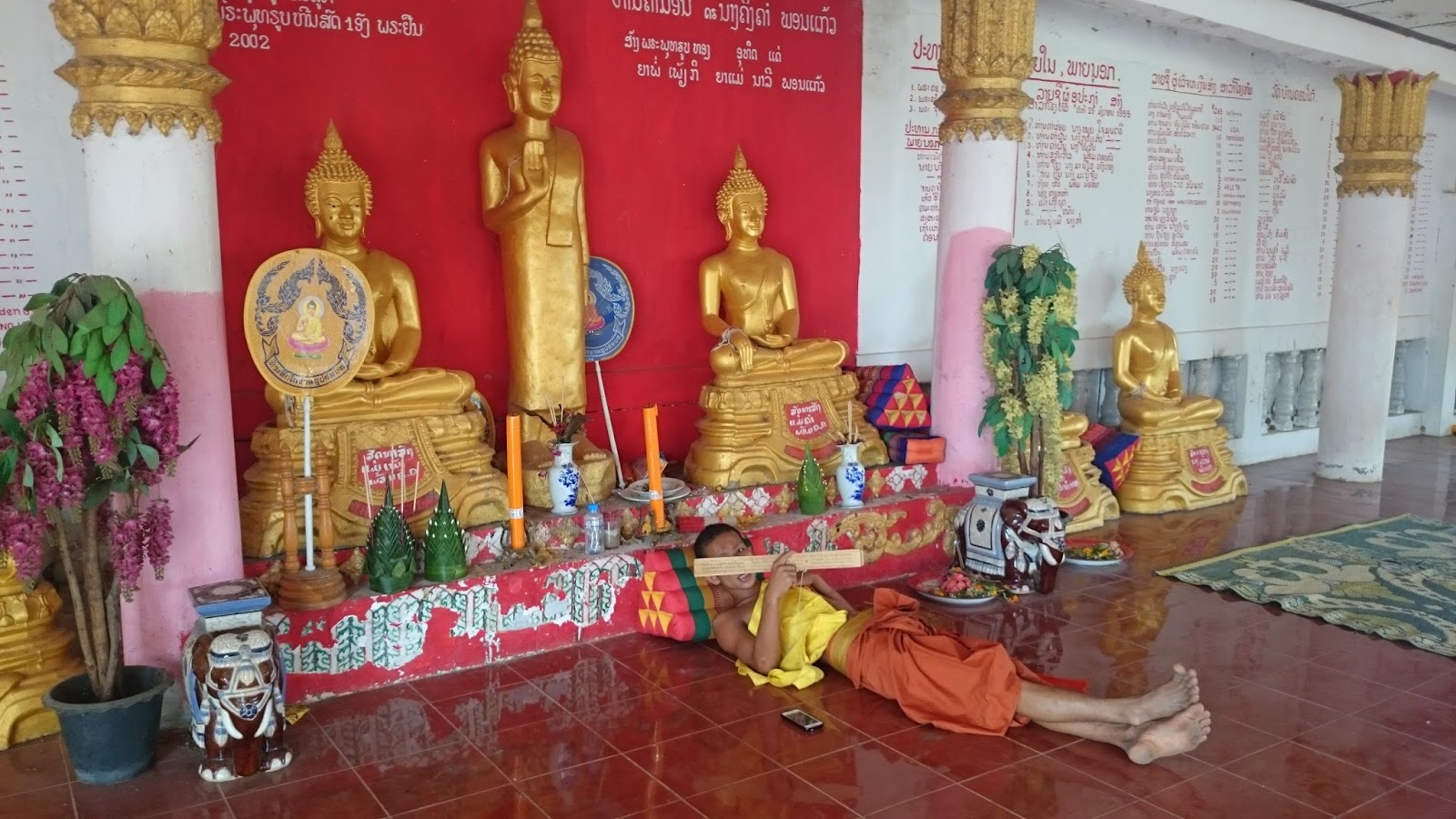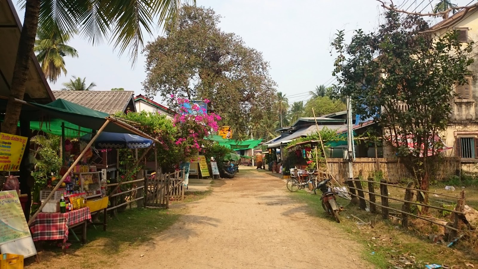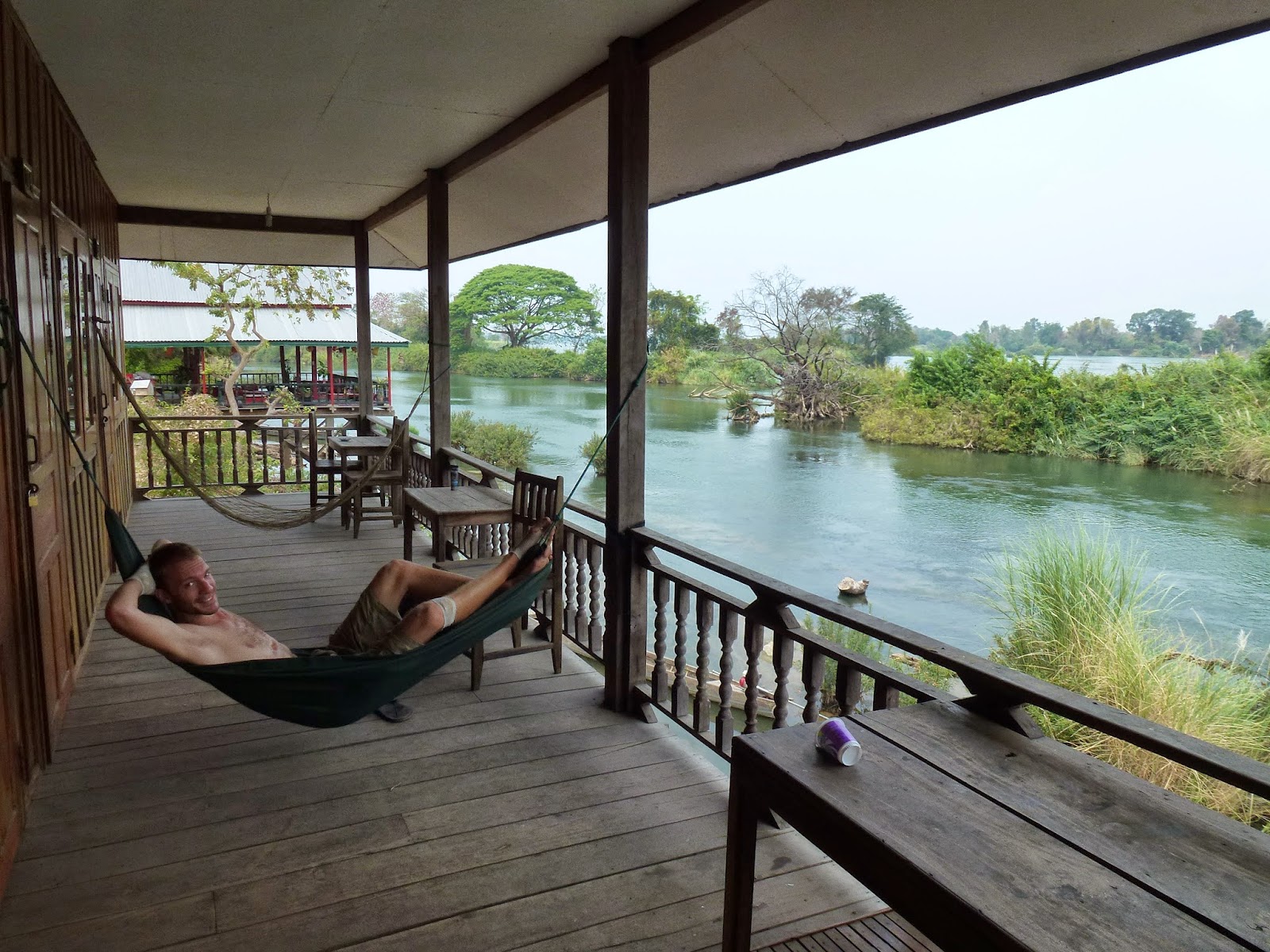 Como buen mochilero, después de una dura búsqueda llegó la recompensa. Me alojé en un bungalow en primera linea al Mekong, inmejorables vistas y hamaca. 40000 kips (4€) la noche. Sin wifi pero se lo robaba al restaurante de al lado. ¿Qué más podía pedir?