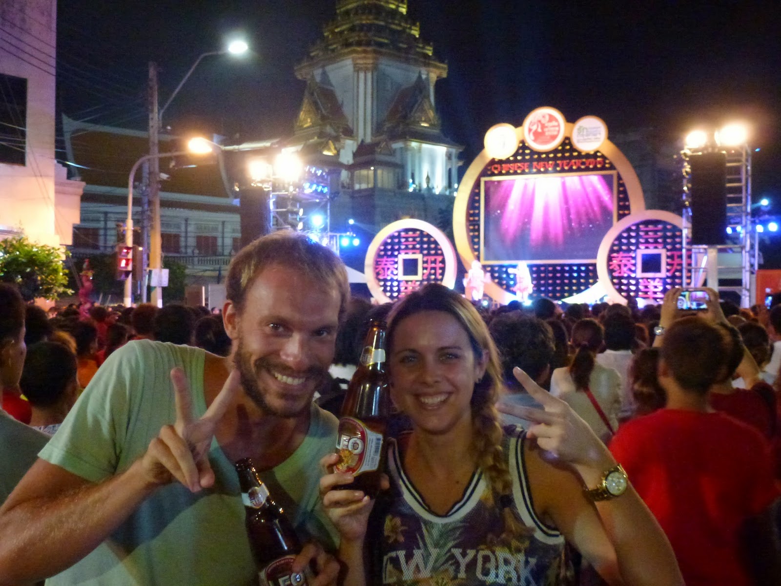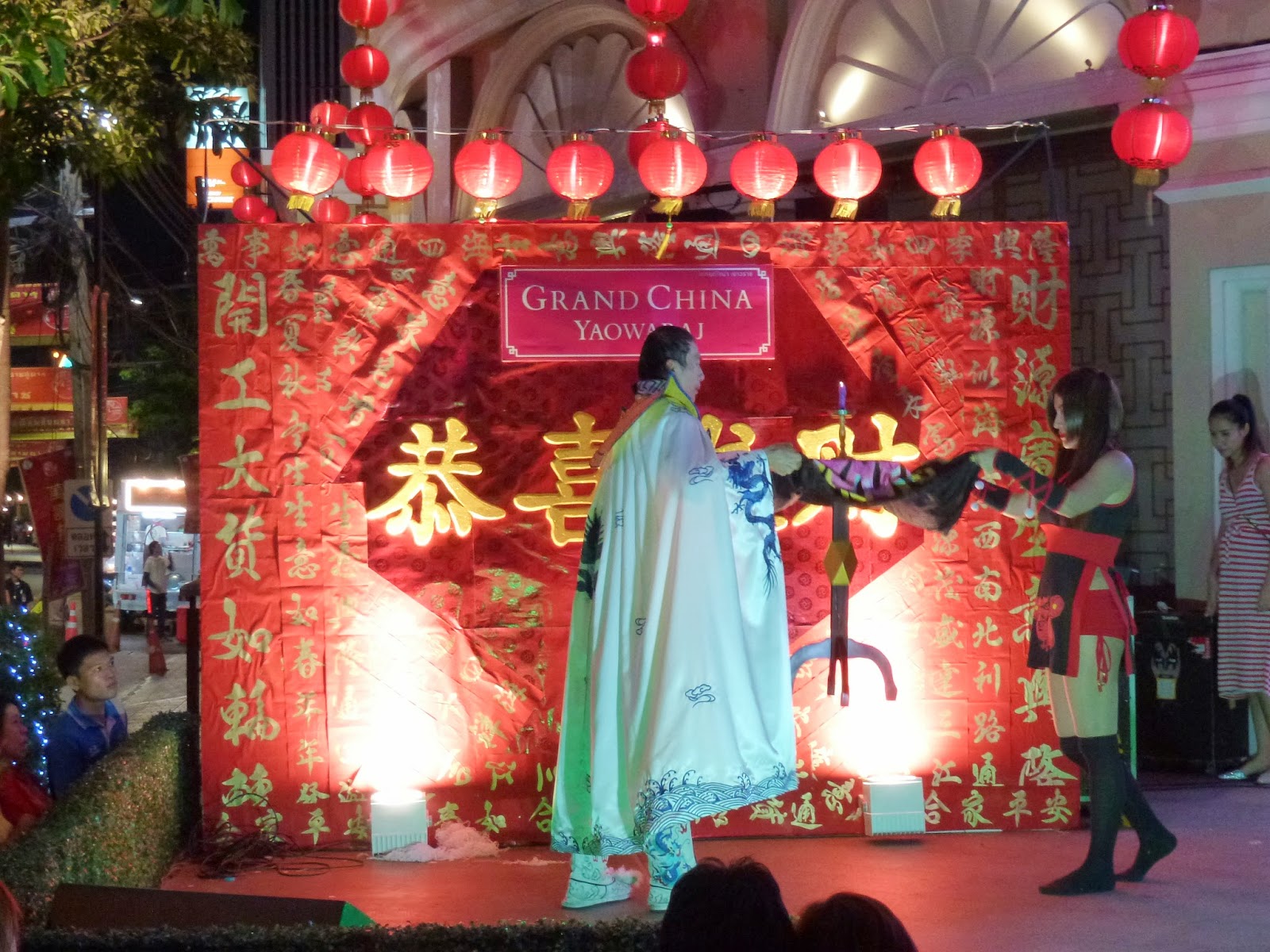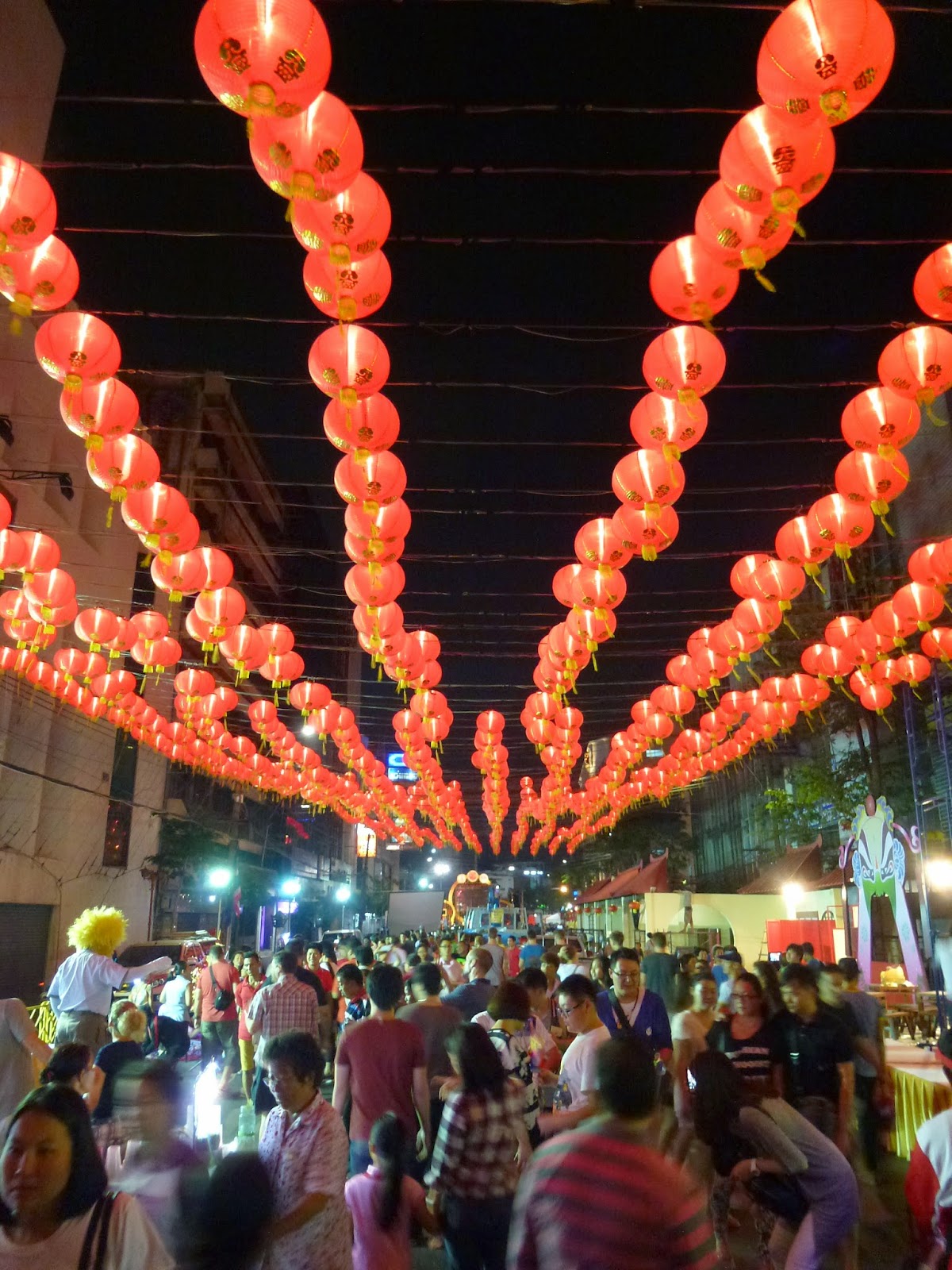 A lo largo de toda la calle Yaowarat instalan casetas con actividades, juegos, sorteos… Tampoco faltan los puestos callejeros de ropa y carritos de comida, tanto tailandesa como típica china, a precios muy baratos. El día anterior a año nuevo se podía pasear y ver los preparativos. Lo que no me imaginaba era lo que vendría el día después.