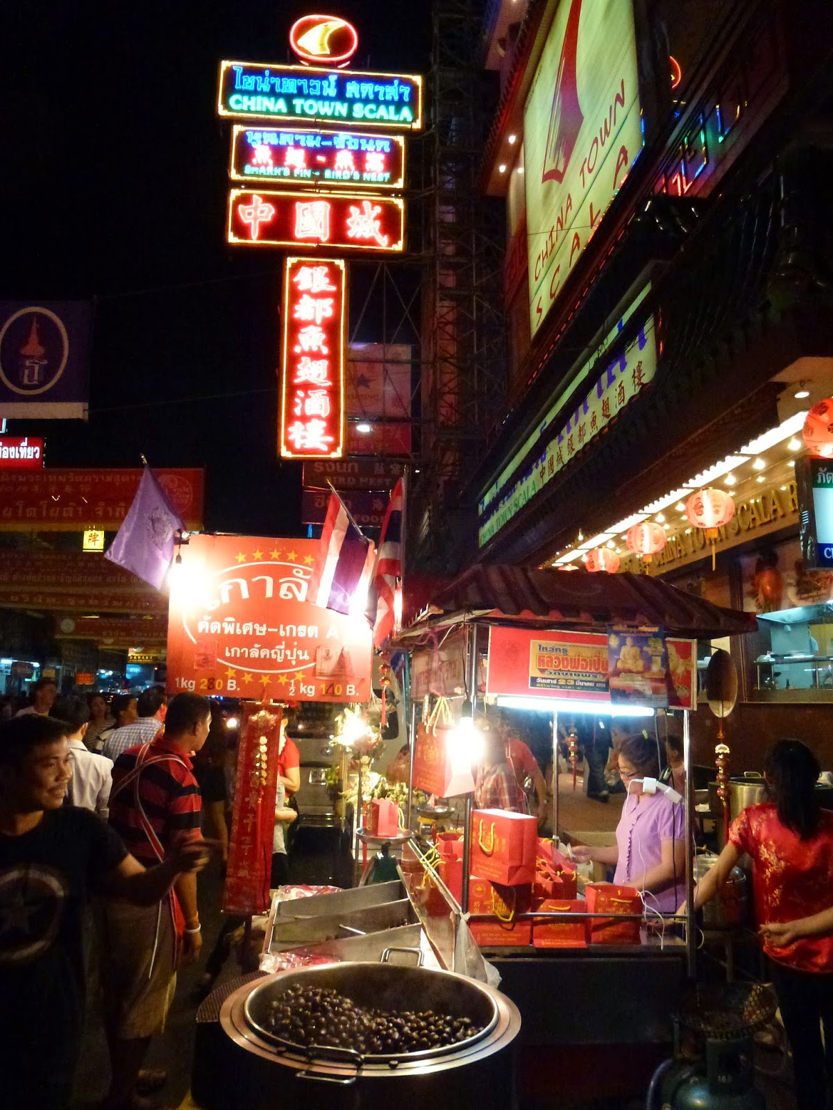 Ya por la noche quedé con Marina, una chica española que vive en Bangkok desde hace tiempo, y me llevó a probar algunos platos típicos que todavía no había probado, vimos espectáculos de magia, volvimos a ver a los dragones, pero lo que vimos era, sobre todo, ¡MUCHÍSIMA GENTE!