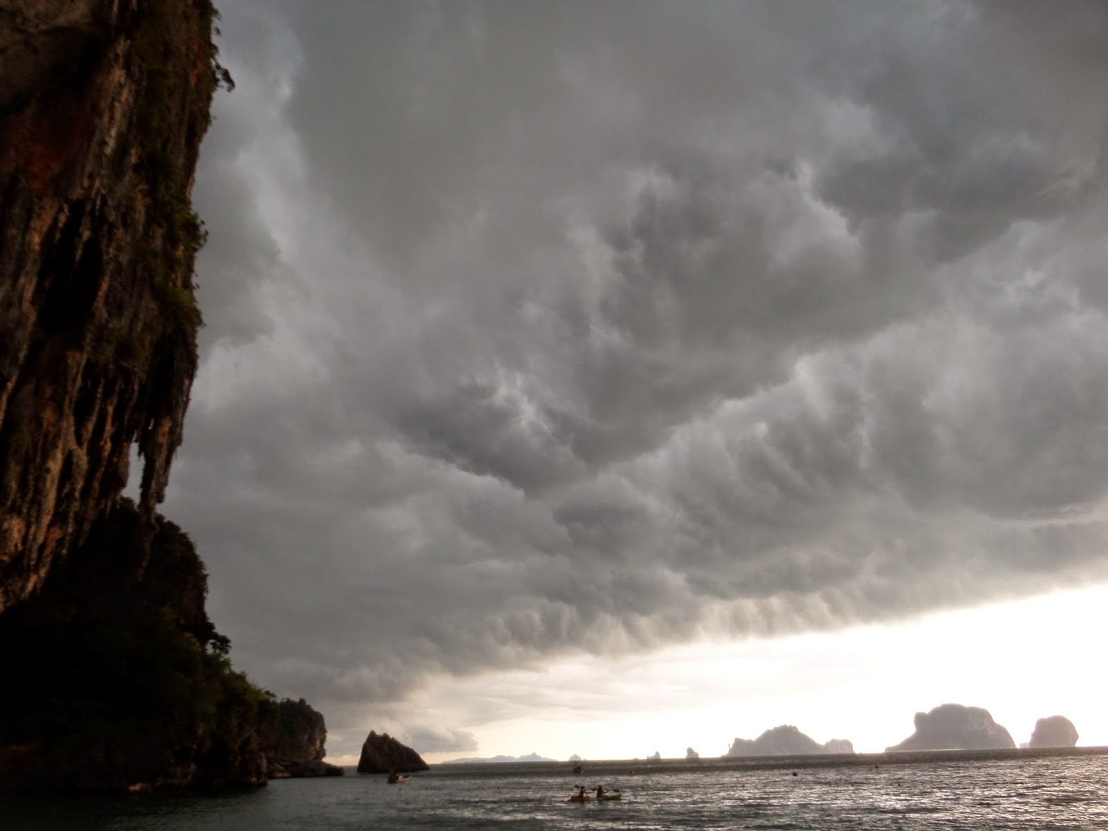 Como suele pasar en estos países tropicales, pasamos de un sol espectacular a algo parecido al fin del mundo en cuestión de minutos. Es una buena forma de conocer gente también en las esperas a que escampe…
