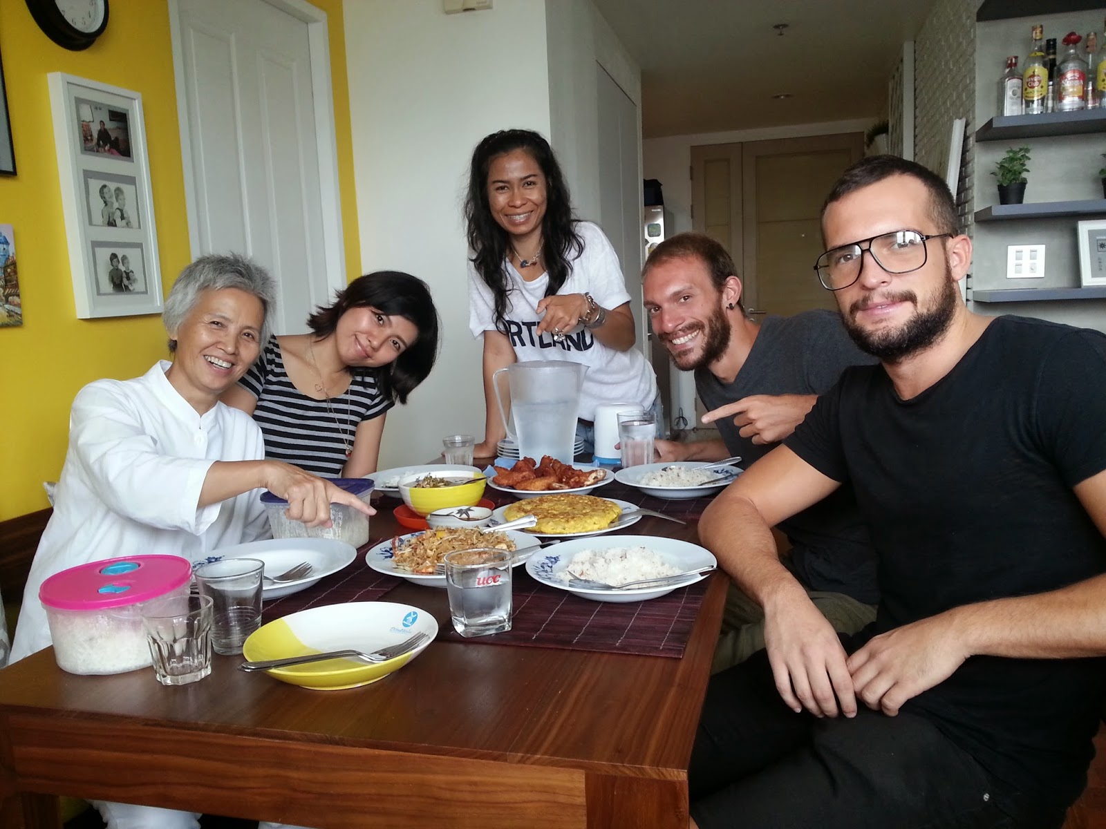 Desde Singapur volé a Bangkok y, antes de ir a Chiang Mai para ver el espectáculo donde se lanzan las linternas al cielo, me quedé 3 días en casa de una amiga Tailandesa de Isaac e hice vida local más que turística. La piscina con vistas a todo Bangkok en una casa a la que fuimos eran para enmarcar.