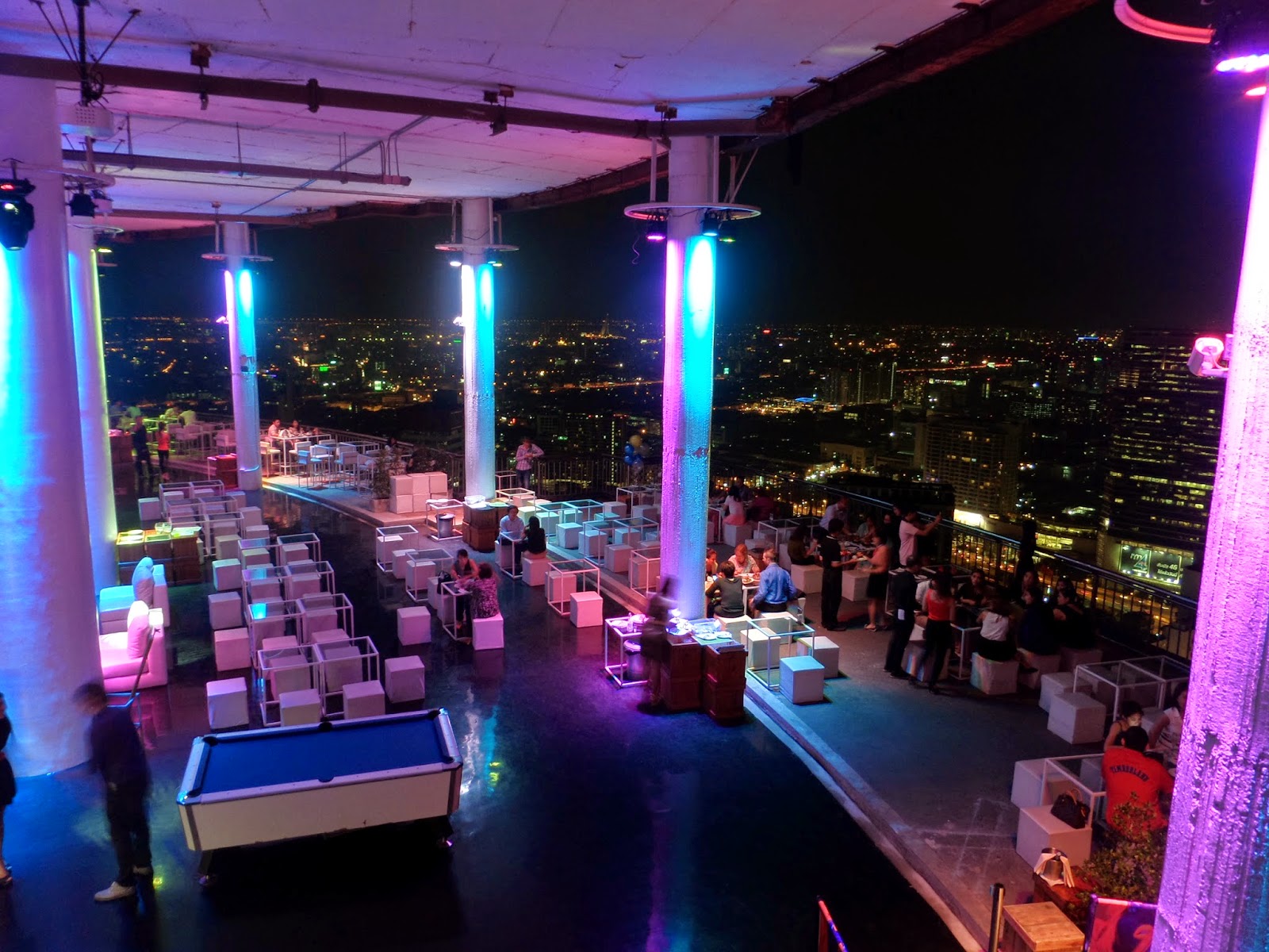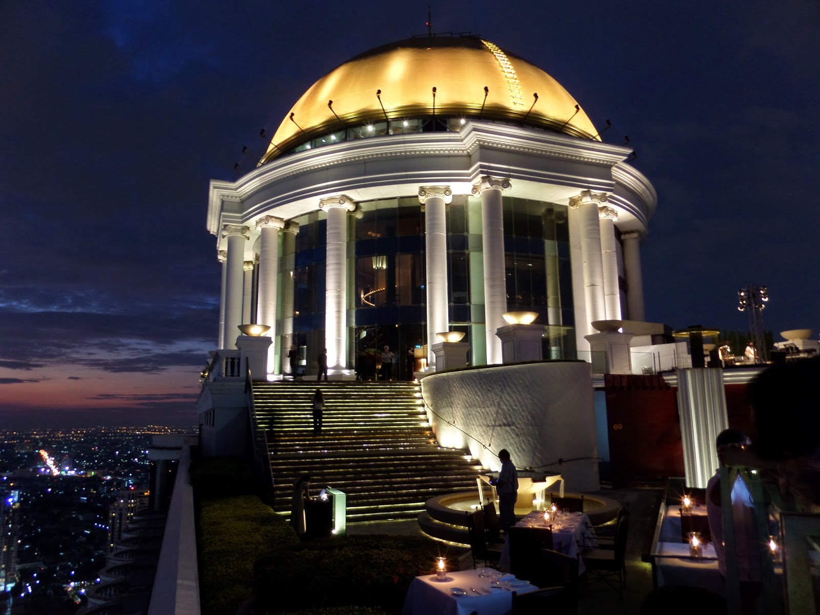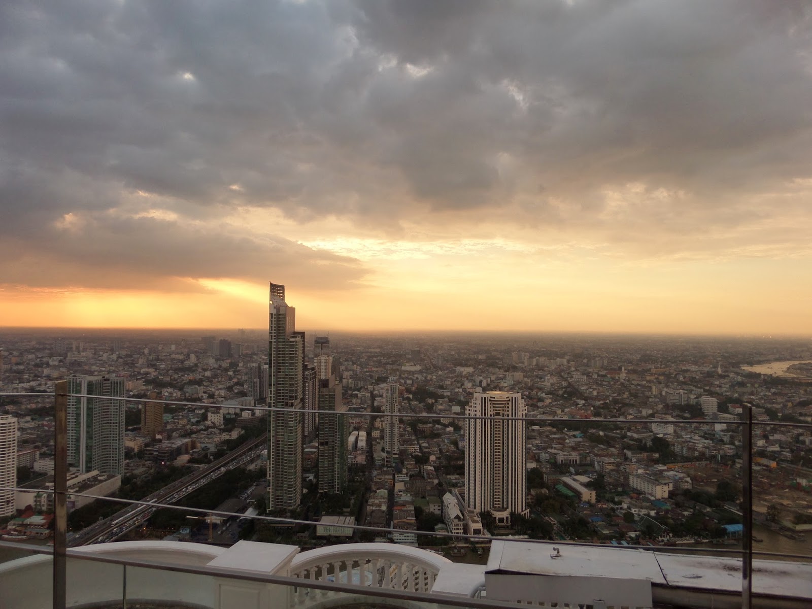 Vi atardecer en el piso 63 del Sirocco, el SkyBar en el ático más famoso de Bangkok gracias a la película Hangover 2 (Resacón en Las Vegas 2). Es gratis subir, aunque en este si que te piden pantalón largo y zapatillas. Se supone que tienes que consumir pero con mi «later later» estuve 2 horas y no pagué nada ;)