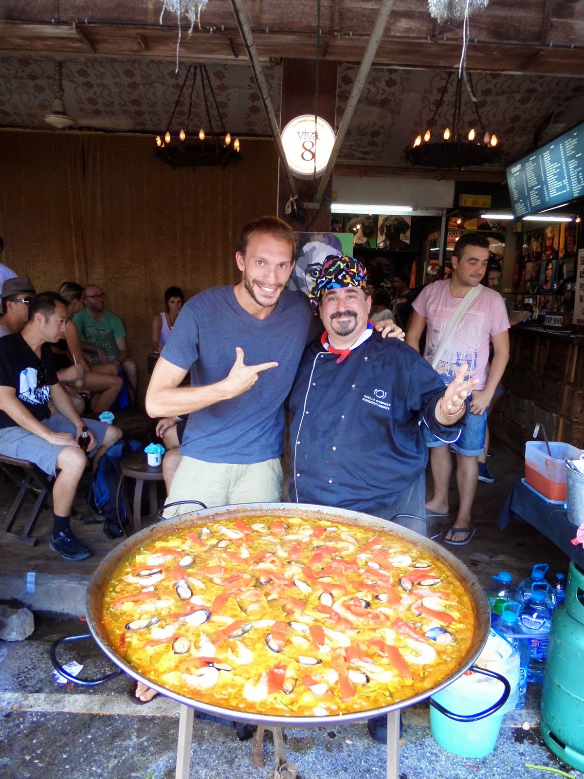 Como anécdota, en Chatuchak, uno de los mercados más grandes del mundo, me topé con Fernando Andrés, un cocinero Riojano que después de cerrar su restaurante se gana la vida montando su propio espectáculo haciendo paellas gigantes, y no le va nada mal. Me contó que hace 12 paellas al día. Me invitó a un par de platos, para chuparse los dedos, me puse las botas. ¡Con su socarrat y todo! ¡En momentos así es cuando me doy cuenta que como la comida de la tierra no hay ninguna!