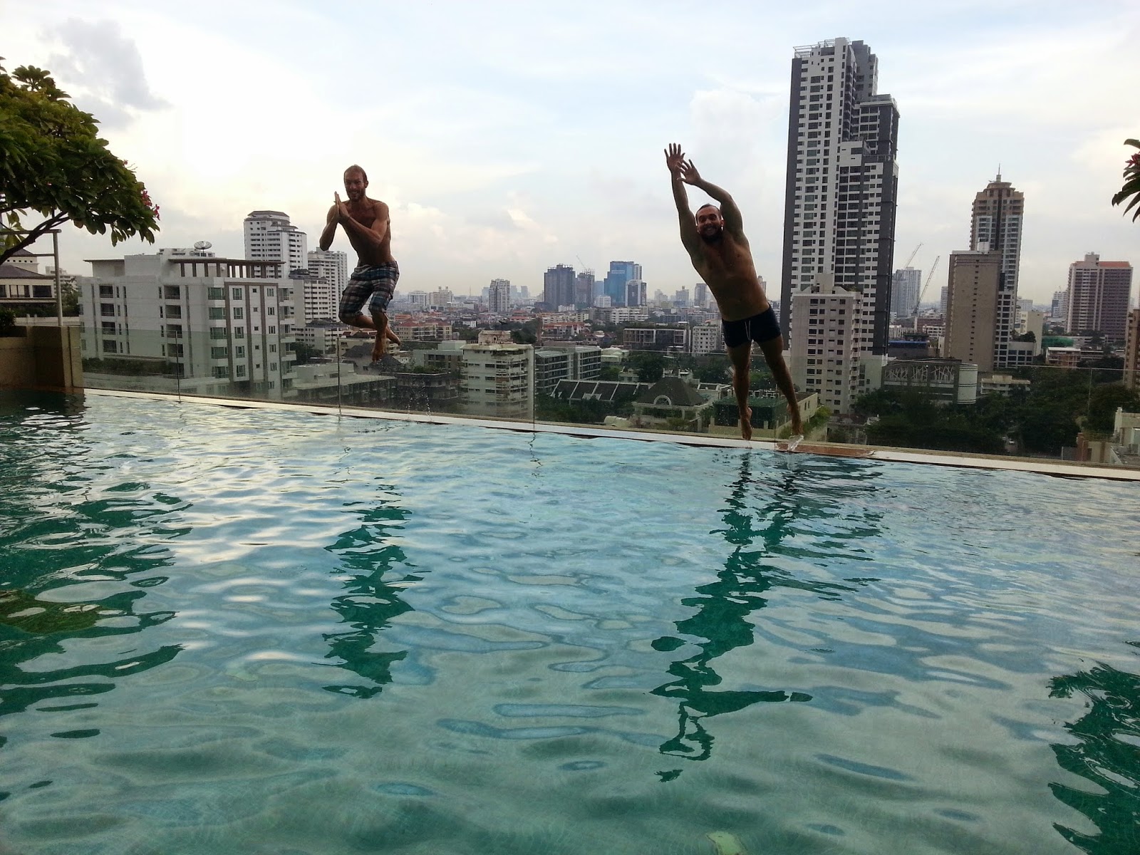 Desde Singapur volé a Bangkok y, antes de ir a Chiang Mai para ver el espectáculo donde se lanzan las linternas al cielo, me quedé 3 días en casa de una amiga Tailandesa de Isaac e hice vida local más que turística. La piscina con vistas a todo Bangkok en una casa a la que fuimos eran para enmarcar.
