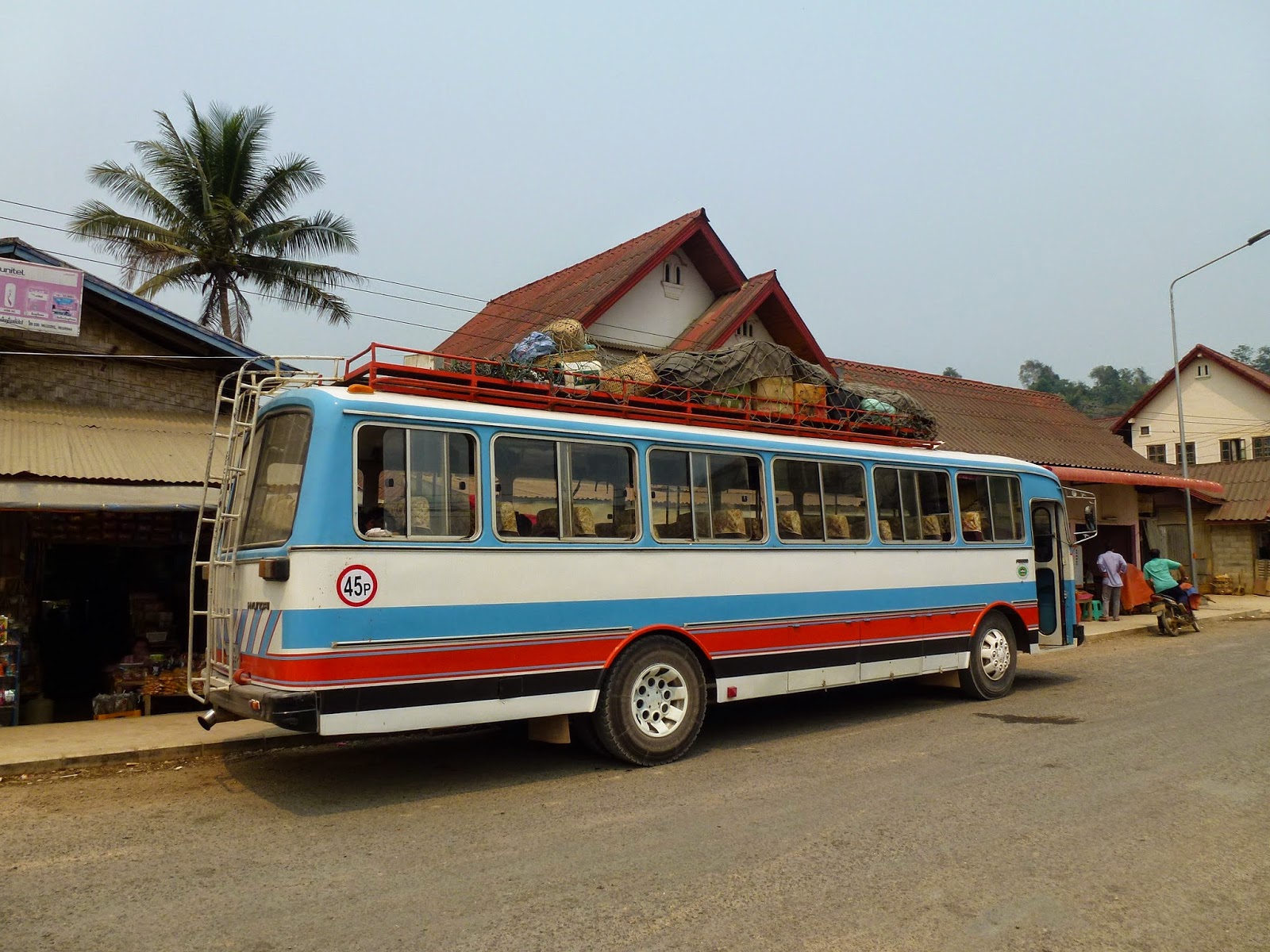 Me presenté en la estación de buses de Luang Prabang y compré un billete a un pueblo llamado Oudomxay, donde el único turista de todo el bus era yo, y desde ahí sí que podría directamente cruzar la frontera para luego llegar a Sapa. El bus, con el equipaje en el techo como de costumbre, moderno lo que se dice moderno, no era… Y cómodo, lo que se dice cómodo, tampoco…