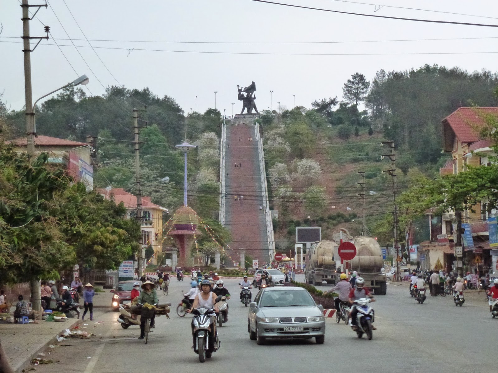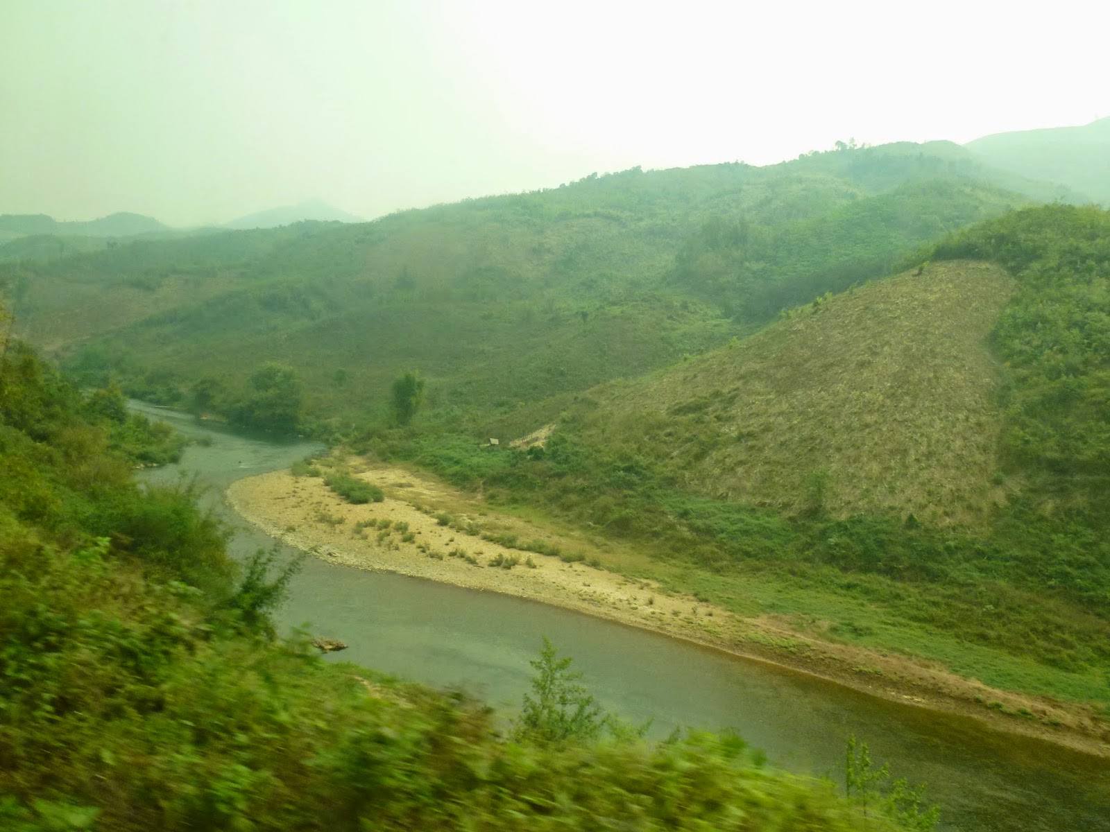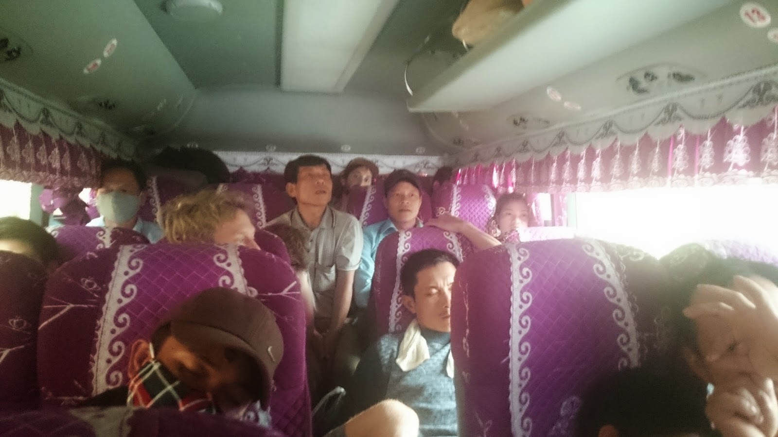 Madrugón de nuevo y a comprar un billete de bus que me llevase a Dien Bien Phu. De nuevo, el único turista era yo, lo demás laosianos. Me senté al lado de un niño que tenía cara de película de dibujos animados. Esta vez 10 horas de aventura. Todo iba de perlas hasta que paramos y se subieron 15 personas más y habia sitio para 3 de ellos. Más infinidad de bártulos. Lo que estaba siendo un plácido viaje se convirtió en la tónica general de este país.