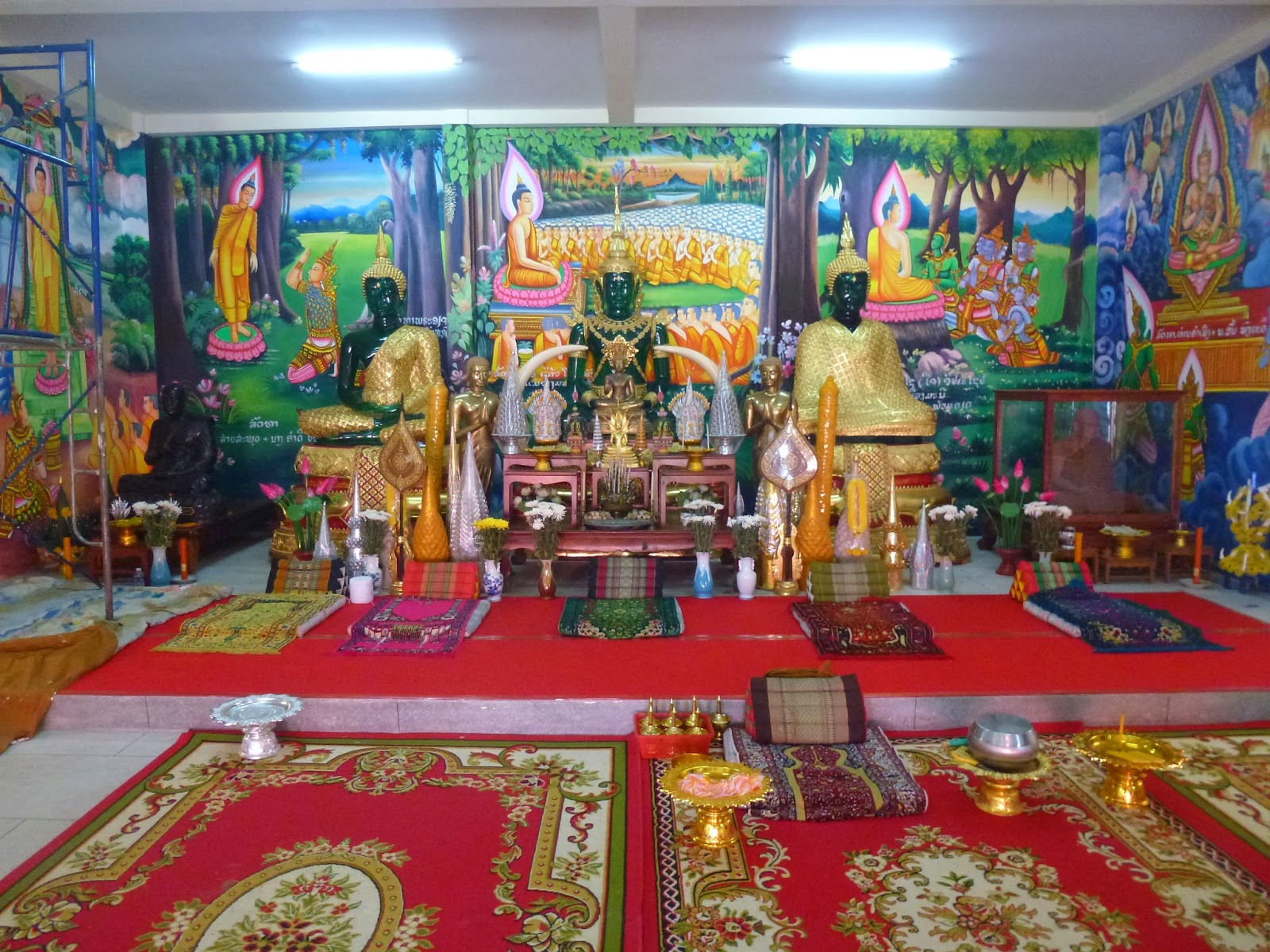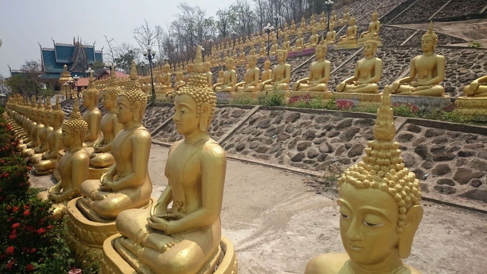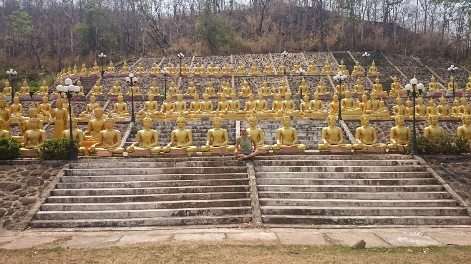 Me extrañó que fuera absolutamente el único turista ahí arriba. Pakse es una ‘ciudad dormitorio’ y la mayoría no se para a visitarla. A mi no me importó, al contrario. Pude disfrutar de ello mucho mejor y hablar con los monjes que se encuentran ahí. Y es que no me lo esperaba, pero detrás del Big Buda hay varios templos, y otros tantos en construcción, junto a miles de mini budas. Me vieron viajando solo y se sentaron conmigo para la foto :)