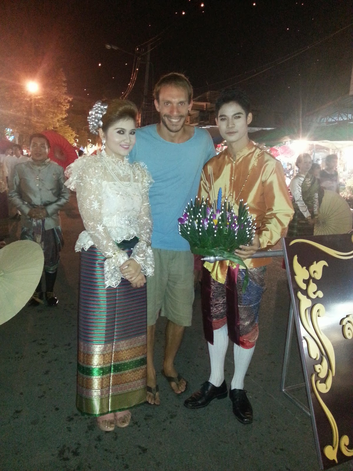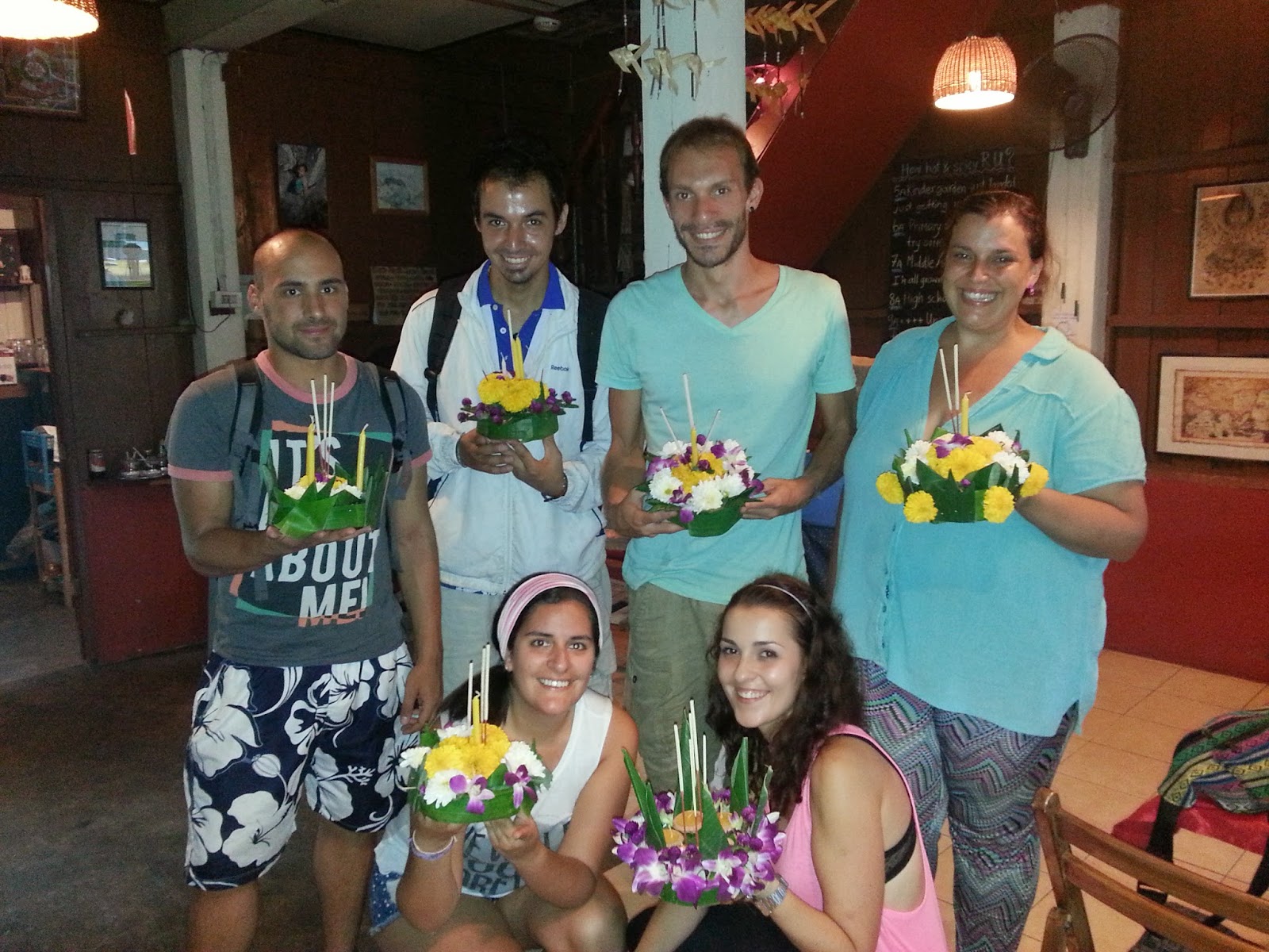 La base del Krathong es de tronco de banano, y luego se decora al gusto, con hojas de la misma planta, flores de diferentes colores, velas, incienso… Casualmente nos juntamos varios blogueros de viajes, como Analucía de Viajar para vivir o Felipe de Un viaje sin límites, y compartimos charlas de la comunidad bloguera que hay por la red. Claramente, el más bonito de todos los Krathongs fue el mio ;)