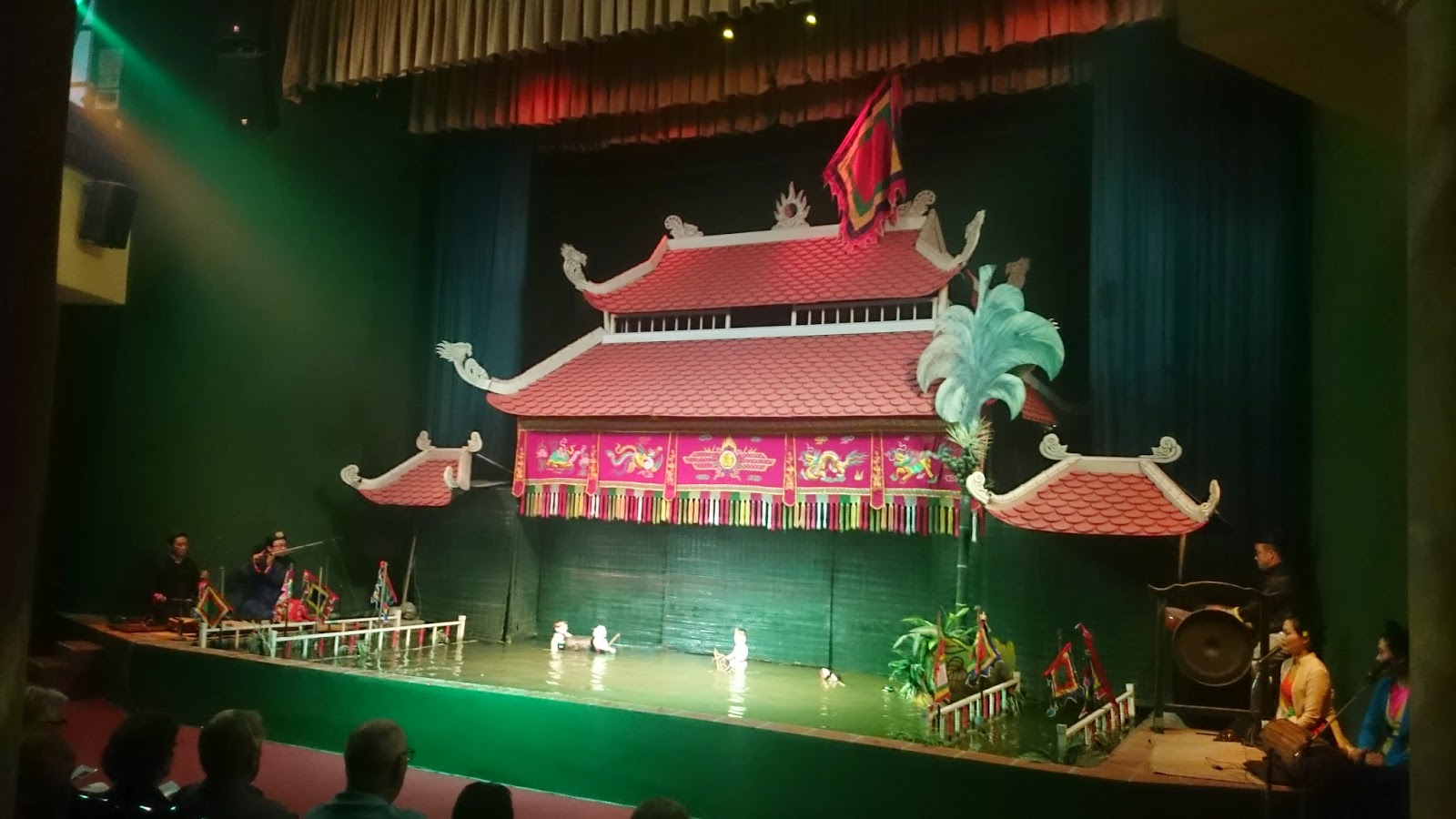 Una de las atracciones más famosas es acudir a uno de los tradicionales Teatros de Marionetas sobre el agua. En este caso pude verlo sin pagar entrada porque mientras esperas en el hall, si vas al servicio tienes que entrar a la sala de la función -un sinsentido…-, con lo que me quedé bastante más tiempo del esperado en el «servicio». Menos mal que no había comprado la entrada todavía. Y, desde mi punto de vista, tampoco merece la pena demasiado. Todo, la historia y diálogos, está en vietnamita.