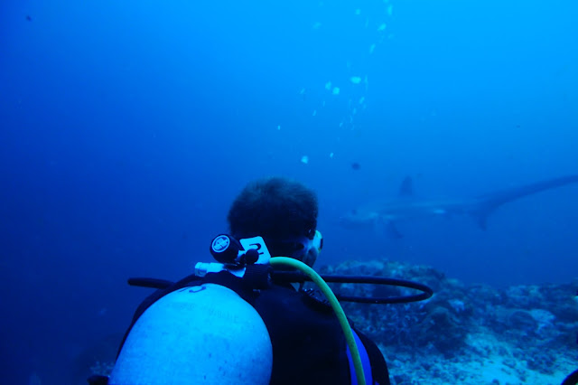La peculiaridad que tiene el tiburón zorro es que vive a una profundidad de entre 200 y 500 metros, pero todas las mañanas asciende a lo que llaman estación de limpieza situada a unos 30 metros para deleite de los buceadores más madrugadores. Con lo que uno se tiene que levantar muuuuuy temprano y ponerse en camino a Monad Shoal, punto de buceo donde se encuentra el tiburón zorro, disfrutando del amanecer filipino.