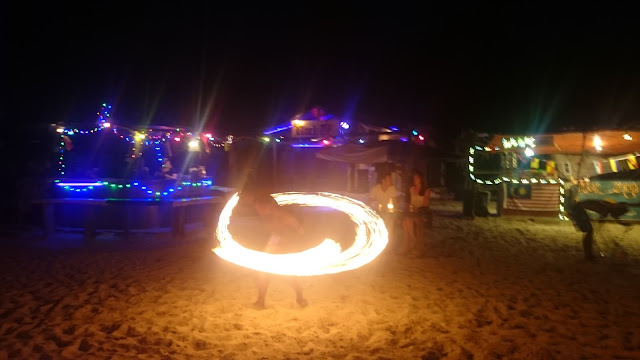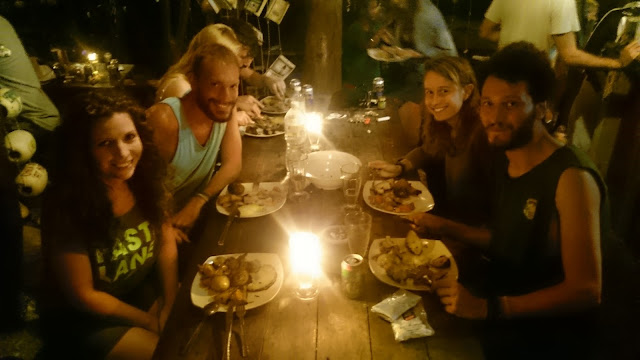 Un rollo muy hippie, cenas en grupo todos juntos y playa privada con un atardecer espectacular. Una noche que coincidimos con 2 gallegos majísimos nos dimos un buen festín no apto para vegetarianos. Y el pescado que tienen más fresco imposible. Recién pescado, vamos.