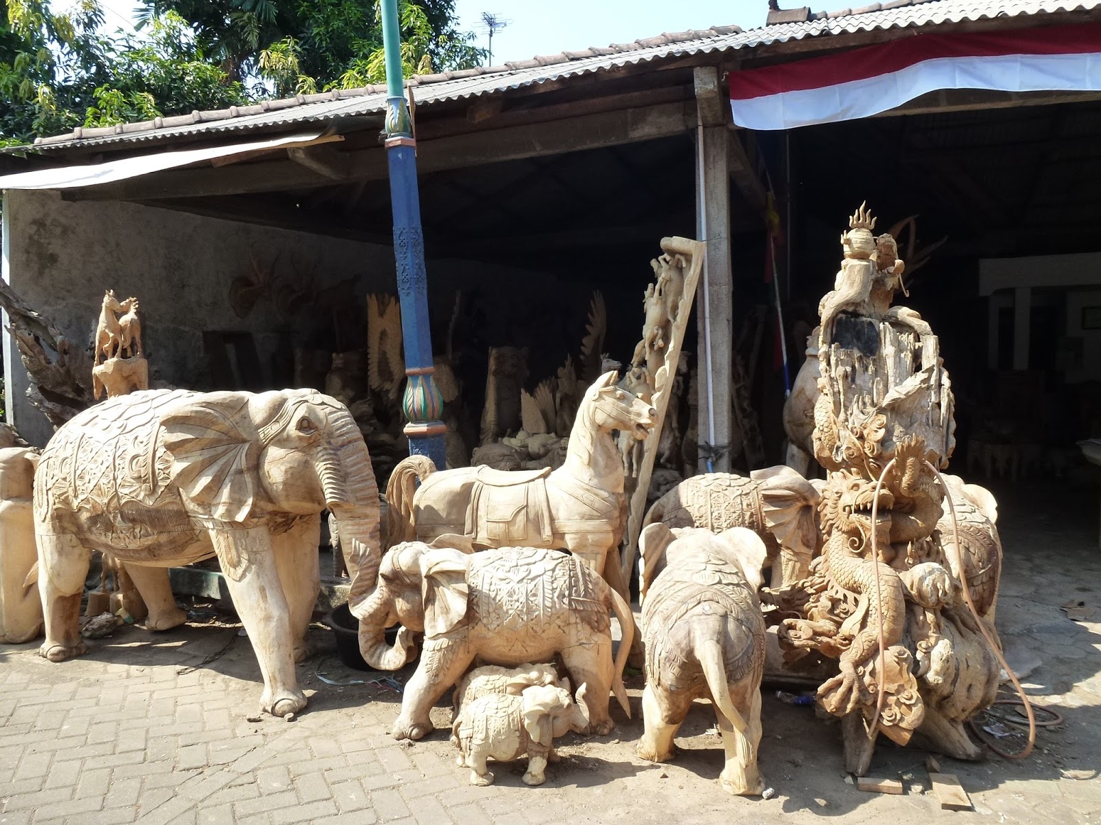 Lo que hace famoso a Jepara entre los locales son los trabajos a mano del tallado de madera para realizar figuras y utensilios. Cientos de tiendas de este tipo.