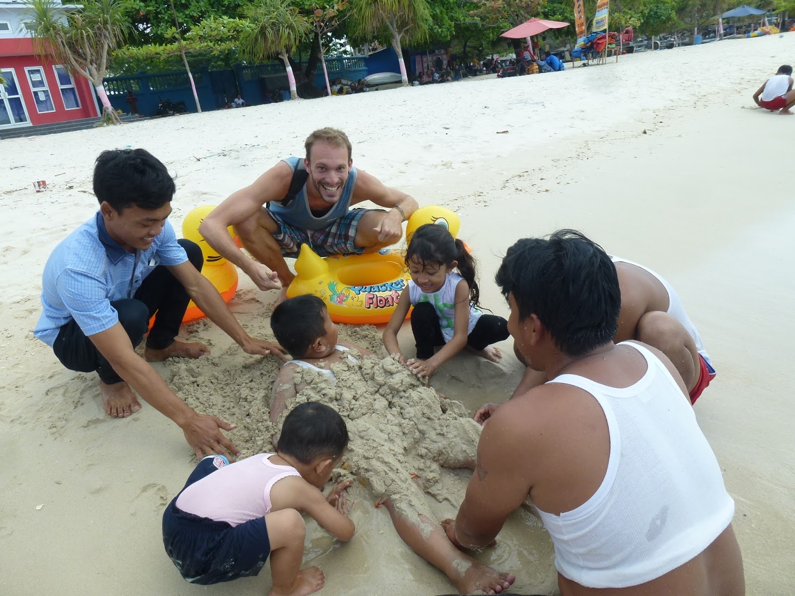Luego visitamos los lugares más importantes de la ciudad como el barrio chino o el parque Alun-Alun y quedamos con sus alumnos para pasar el día por ahí y ver el atardecer en la playa Tegal Sambi. Un día completito y genial. ¡Esto solo te lo da el Couchsurfing!