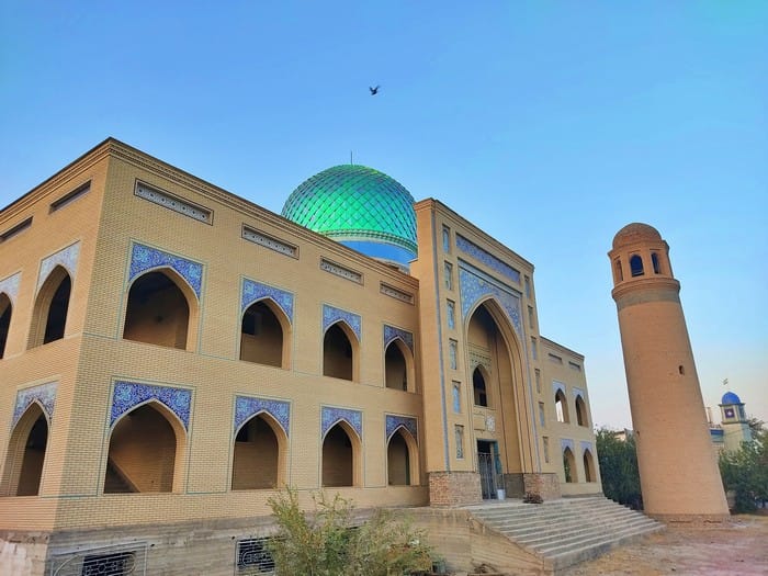 La madrasa, con su enorme cúpula verde, es uno de los edificios más bonitos de Khujand.