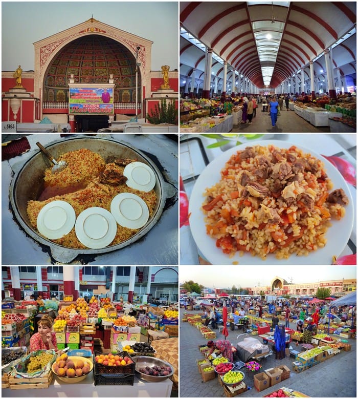 En la plaza externa se colocan puestos callejeros donde poder probar la comida típica local, el Plov. No solo de Tayikistán si no de Asia Central, especialmente Uzbekistán.