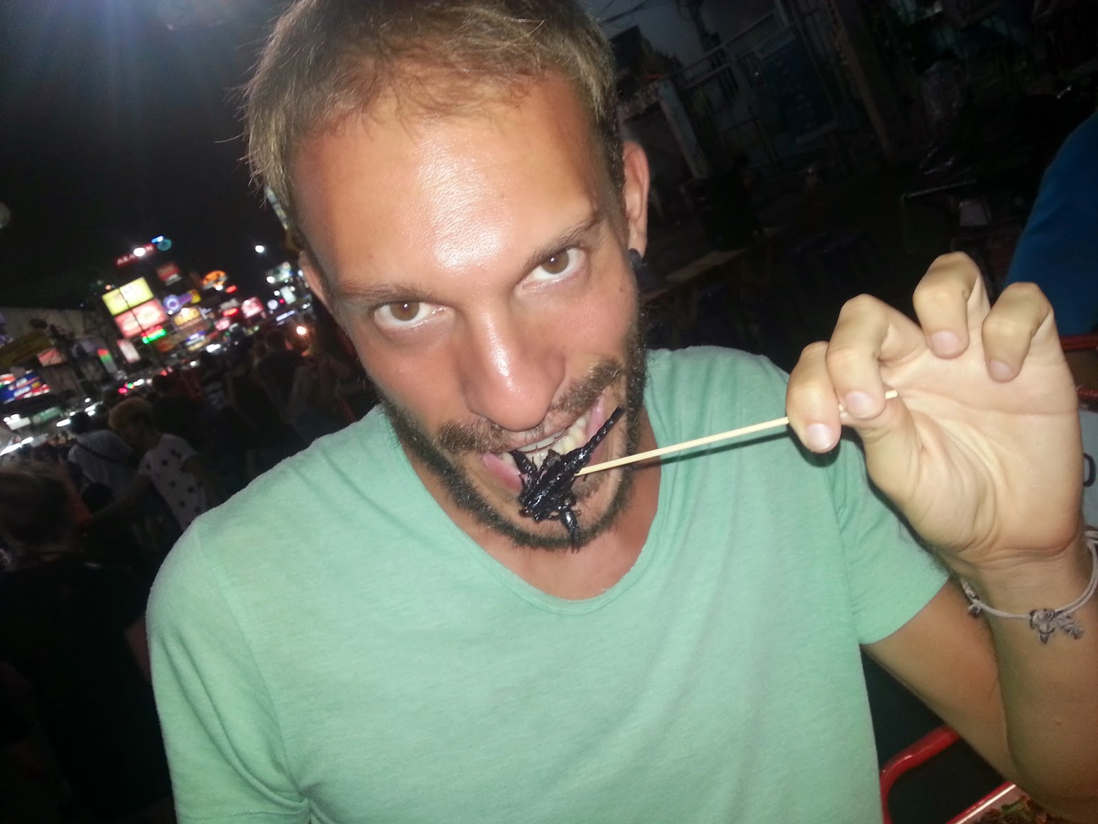 Tuve que hacer noche en Bangkok antes de ir a Koh Chang. En Khao San Road, entre cerveza y cerveza con otros viajeros que uno va conociendo, por fin comí algo que no pensé que fuera a probar después de tanto tiempo en Tailandia… ¡un escorpión! He de reconocer que estaba buenísimo. Porque no son baratos, si no habría caído alguno que otro más… :)