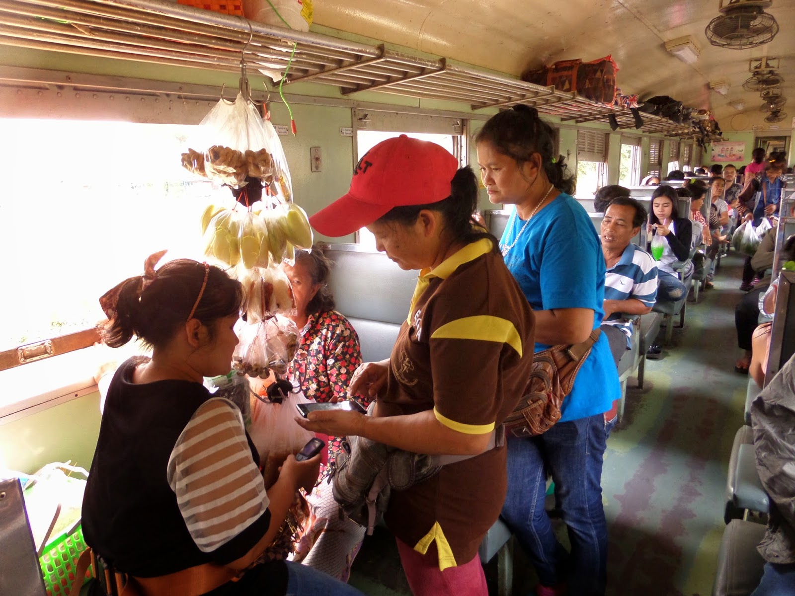 Con mi carnet Advanced bajo el brazo tomo un ferry nocturno, súper cómodo, en serio, y barato 10 euros, a Chumphon para desde ahí subirme en el tren camino a Bangkok durante 11 horas en las que pudimos compartir momentos con gente local auténtica sin parar de comer todo el viaje lo que las señoras pasaban continuamente.