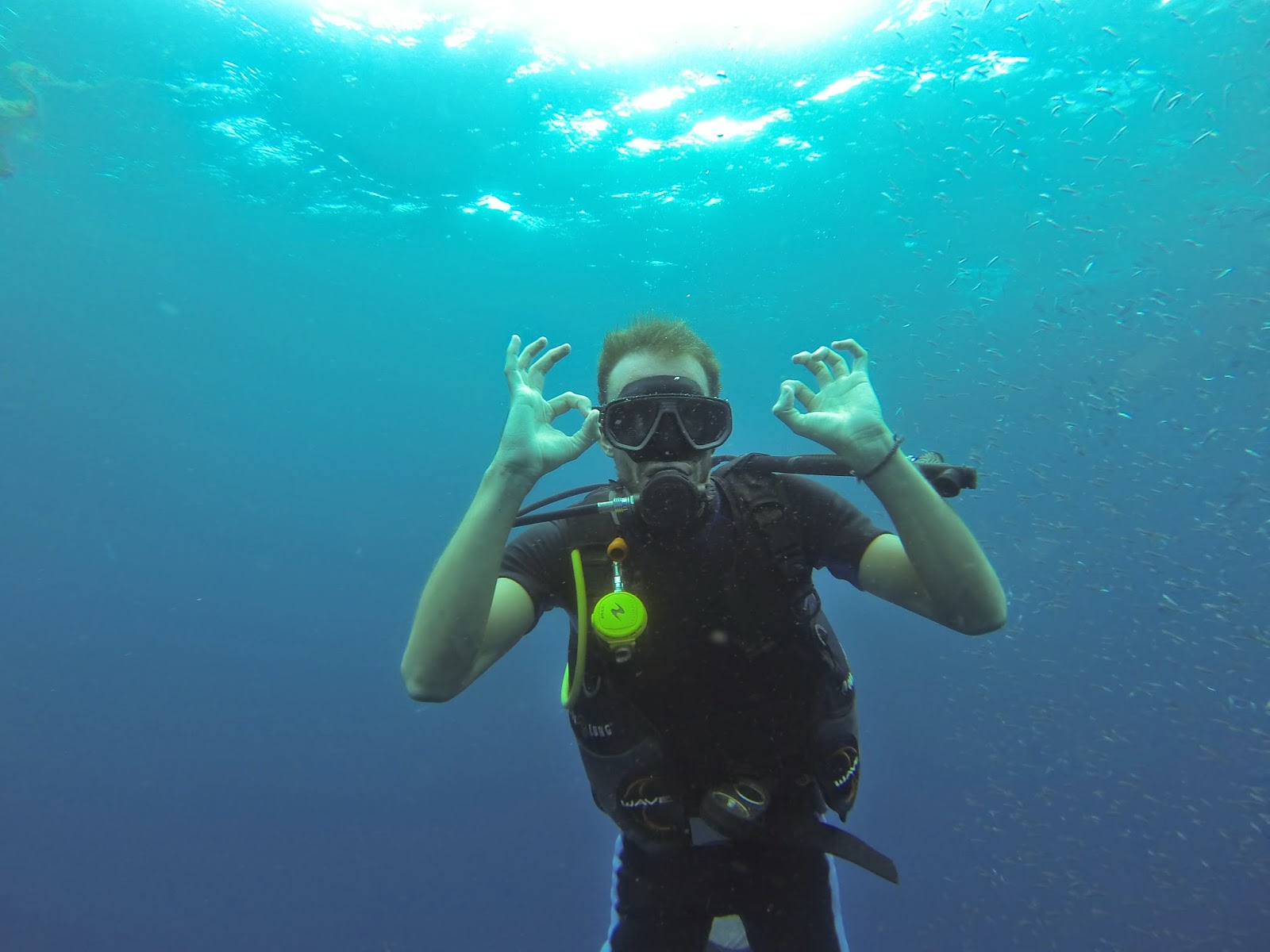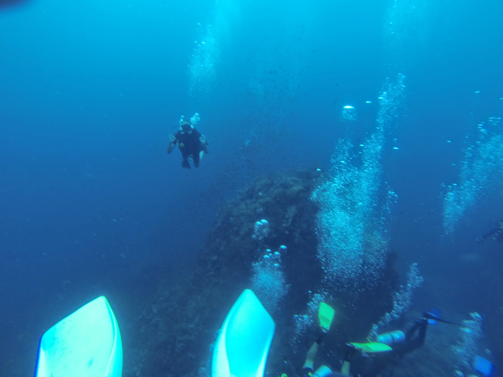 Pero lo bueno estaba por llegar, y yo que nunca había buceado antes, bajar a unos 20 metros de profundidad y admirar tanta variedad de arrecifes de corales y peces de todos los tamaños y colores fue una experiencia que recomiendo a todo el mundo. ¡Hasta vi una moto y un catamarán hundidos!