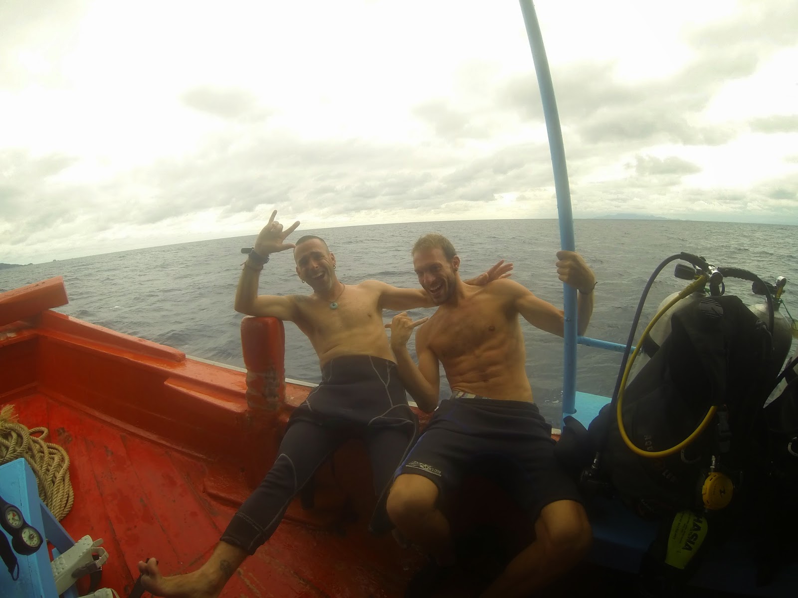 Cuando llegué a la isla me puse en contacto con El Brujo, un madrileño al frente de IHASIA, una de las muchísimas escuelas de buceo de Koh Tao, en Chalok Baan Kao, la playa del sur de la isla, mucho más tranquila que Sairee Beach, la otra playa principal. No me equivoqué al elegirlos porque he pasado unos días alucinantes con ellos. Mención especial a Ra, mi instructor, un crack, ¡aunque no consiguiéramos ver el famoso tiburón ballena!
