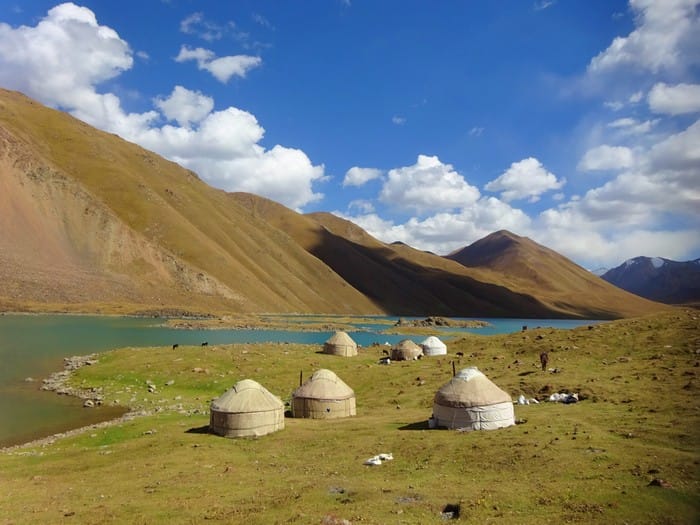 Como suele ocurrir en los lagos glaciares de Kirguistán, la temporada idónea no es extensa. Desde principios de junio hasta finales de septiembre los nómadas construyen sus yurtas y se traen a los animales para pasar todo el verano.