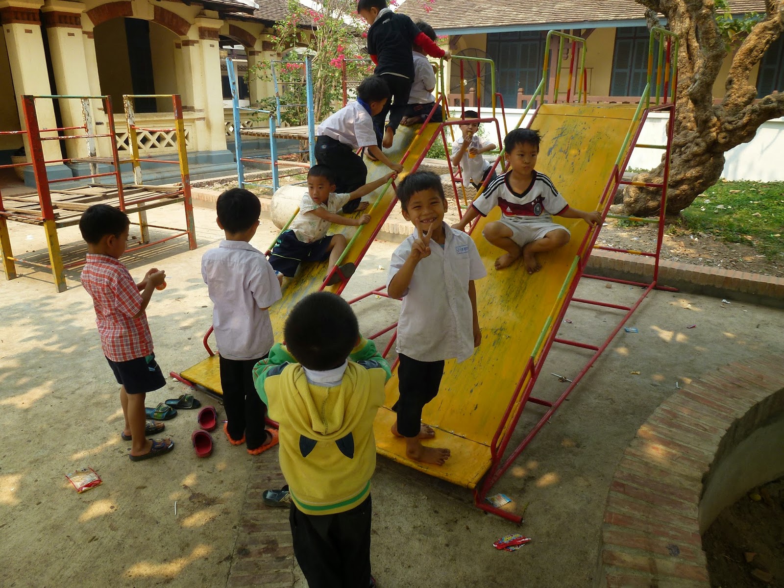 Un día me colé en una escuela. Allí todos los niños van uniformados y se volvieron locos cuando me vieron pasear por el patio o entrar en el aula. Estuve un buen rato con unos que eran unos cachondos. ¡Aquí me ves aprendiendo laosiano con los mejores profesores que podría tener! Sabaideeeee.