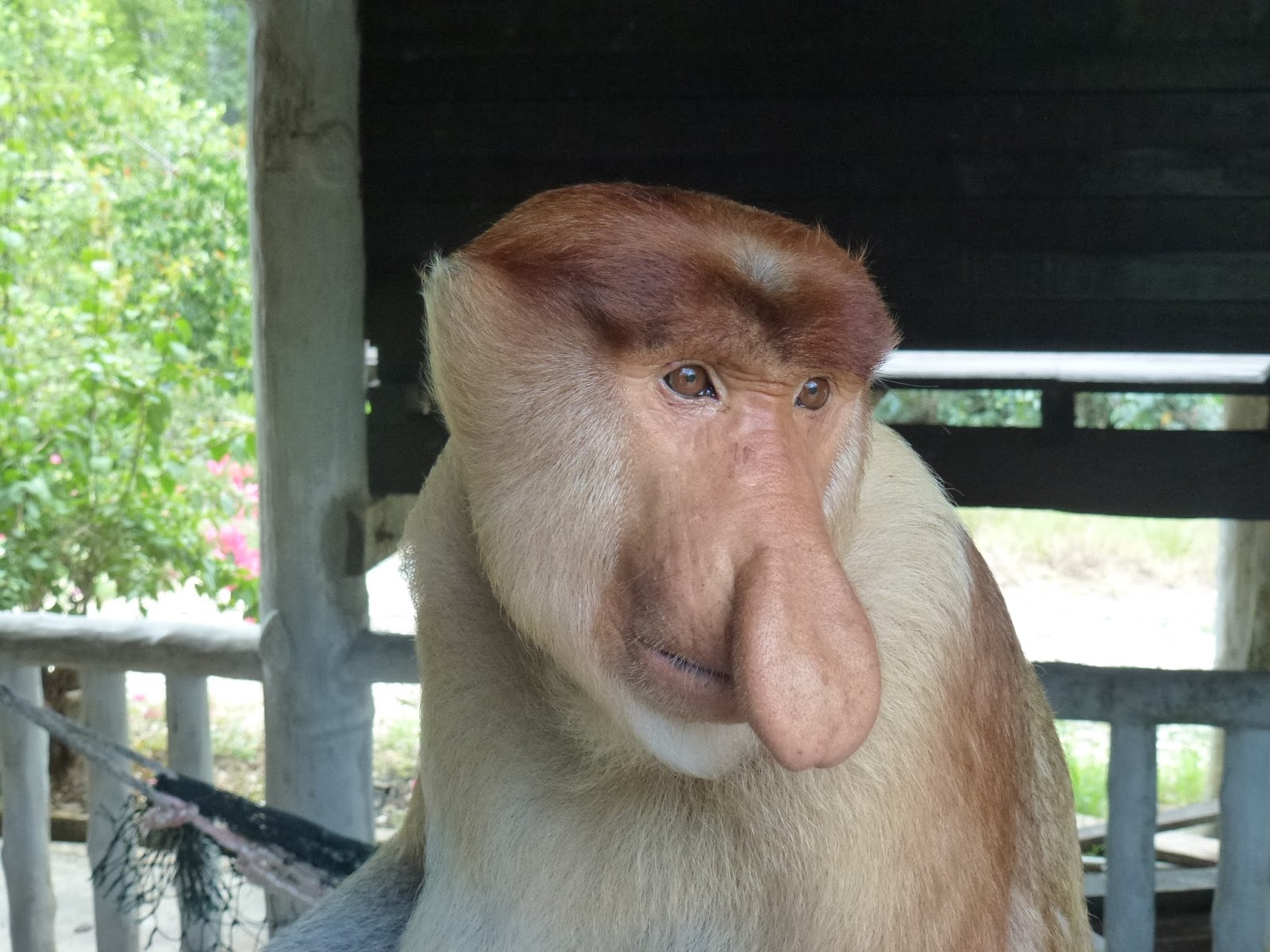 Y esta es la cara que pone un mono narigudo cuando le cortan el rollo mientras estaba pasándolo tan bien. ¡Fue tal cual! Así ya no parece tan adorable…