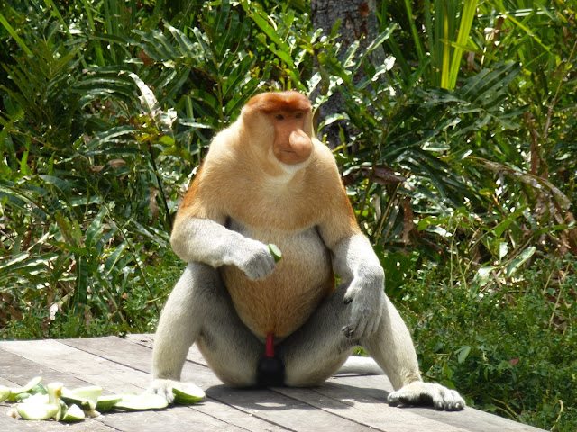 Si los orangutanes me encantaron, los monos narigudos superaron con creces todas las expectativas que tenía. Es difícil expresar con palabras lo que yo sentí al tener un animal tan especial a escasos centímetros. ¡No parecen reales! Para mí son encantadores, auténticos, adorables. Feos les parecerán a otros. Hay 7000 en el mundo y solamente se pueden encontrar en libertad en Borneo. Y cómo no, también se encuentran en peligro de extinción.