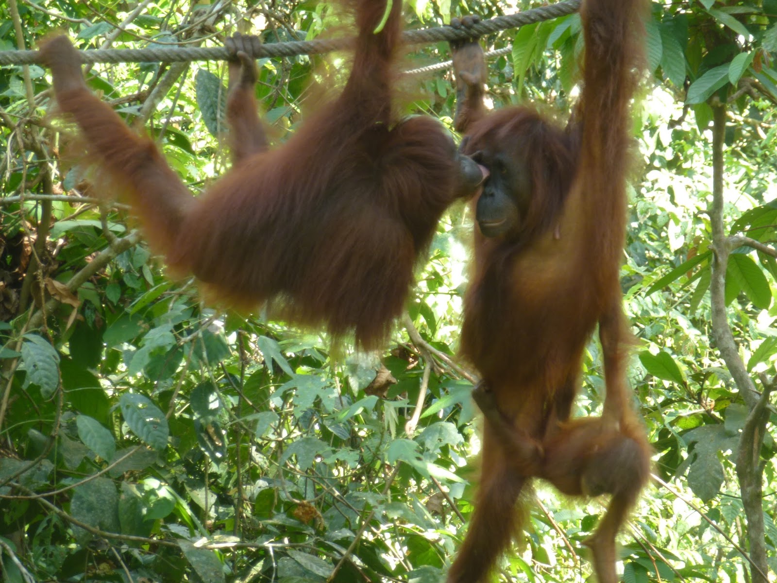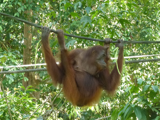 A las 2 de nuevo al centro de orangutanes para ver el vídeo que proyectan y disfrutar de nuevo de esta especie en peligro de extinción tan especial. A esta hora con menos gente pero se acercaron menos orangutanes. Es cuestión de suerte.
