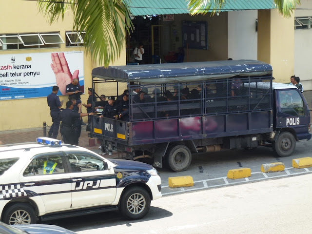 Como curiosidad, tanto Sandakan como la mayoría de las ciudades del norte de Sabah están tomadas por los militares y la policía debido a los secuestros a turistas que aquí se producen de vez en cuando por parte de piratas filipinos. Por lo que parece, últimamente el objetivo principal son los chinos y no europeos, pero en el ambiente se puede respirar esa extrema seguridad.