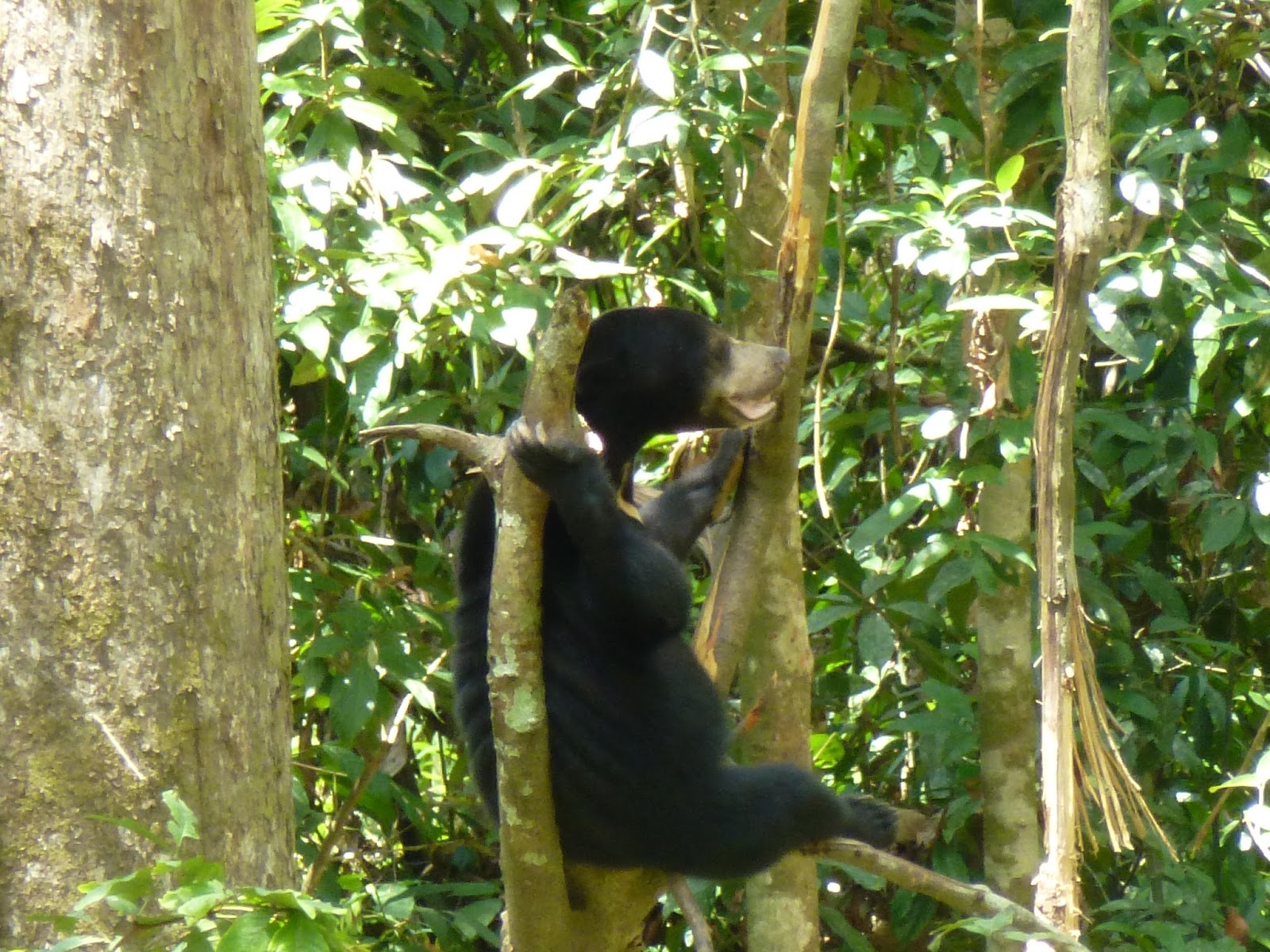 Por suerte la decepción tornó en sorpresa positiva. Me acerqué al Sun Bear Conservation Center que se encuentra al lado y al cual no tenía pensado entrar, donde se encuentran los osos más pequeños del mundo. Entré ‘como Pedro por su casa’ sin pagar y lo primero que me encontré no fue un oso, sino un orangután, por su propia voluntad merodeando por los árboles.