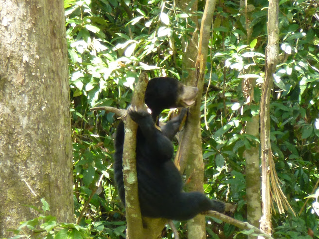 Después de esa sorpresa, si pude disfrutar de los osos. Algunos apoyados en los arboles, otros buscando comida y los mas graciosos jugando entre ellos.