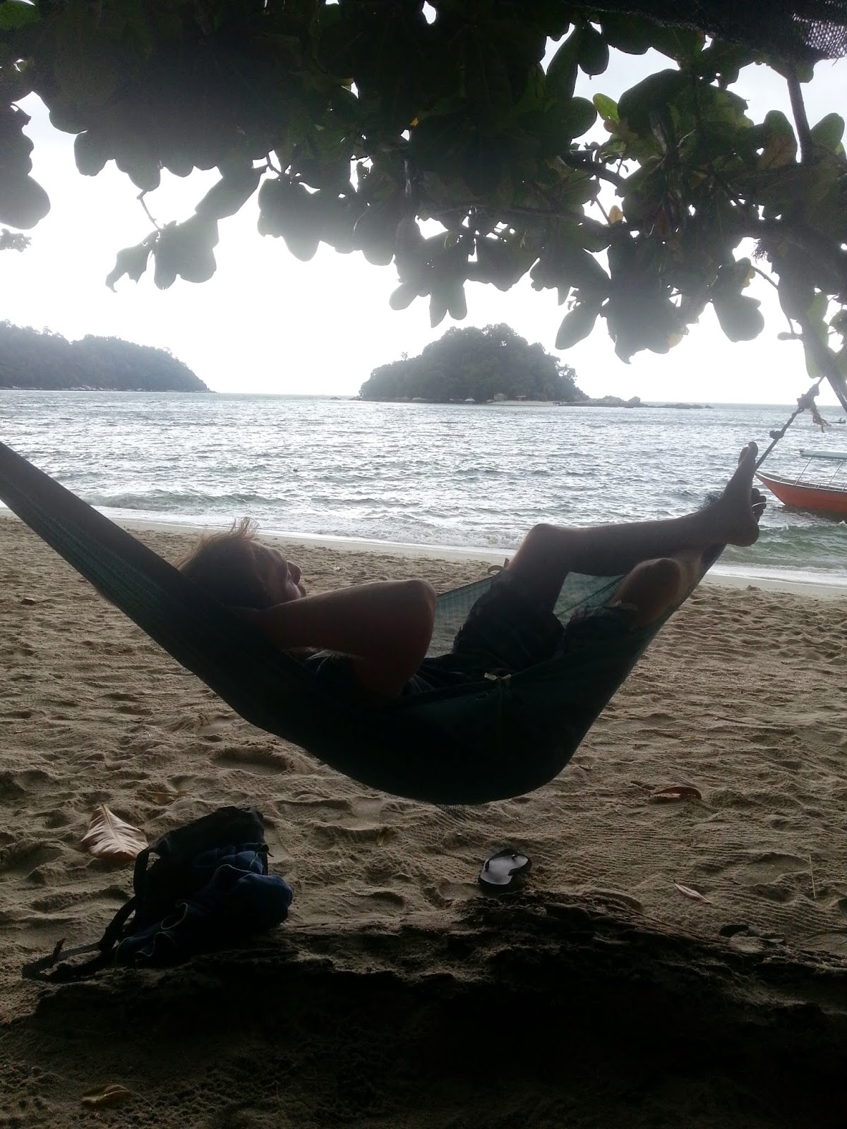 Pangkor es una isla pequeñita prácticamente desconocidapara el turista. No estaba en mis planes ni sabía de su existencia, pero un par de días antes conocí a unos alemanes que me la recomendaron y allá que me fui. ¡Tomé un bus y a la aventura! Desde Melaka a Pangkor no hay las 12 horas que tardé en llegar, ni de coña, pero si se pasa diluviando todo el camino, va parando en mil sitios, luego tengo que tomar un ferry y luego un taxi, al final se convierte en interminable.