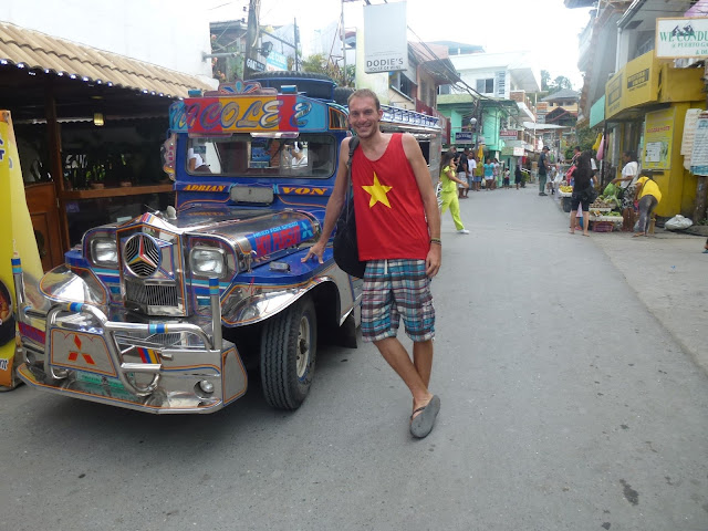 Para moverse por la isla hay varias opciones. Tienes el triciclo, una moto con sidecar vamos, que es como el tuk tuk tailandés en filipino para que te hagas una idea, y caben desde una persona hasta un número inimaginable. ¡Te sorprenderías! Puedes también utilizar la moto particular de los locales. Pero sin duda el que más me llamó la atención en un primer momento fue el Jeepney. Estos son camiones de las fuerzas armadas de los Estados Unidos abandonados durante la Segunda Guerra Mundial y que actualmente se utilizan como buses. Siempre repletos hasta que no cabe un alma. Si hicieran un concurso de cuál es el más hortera, habría candidatos para aburrir.