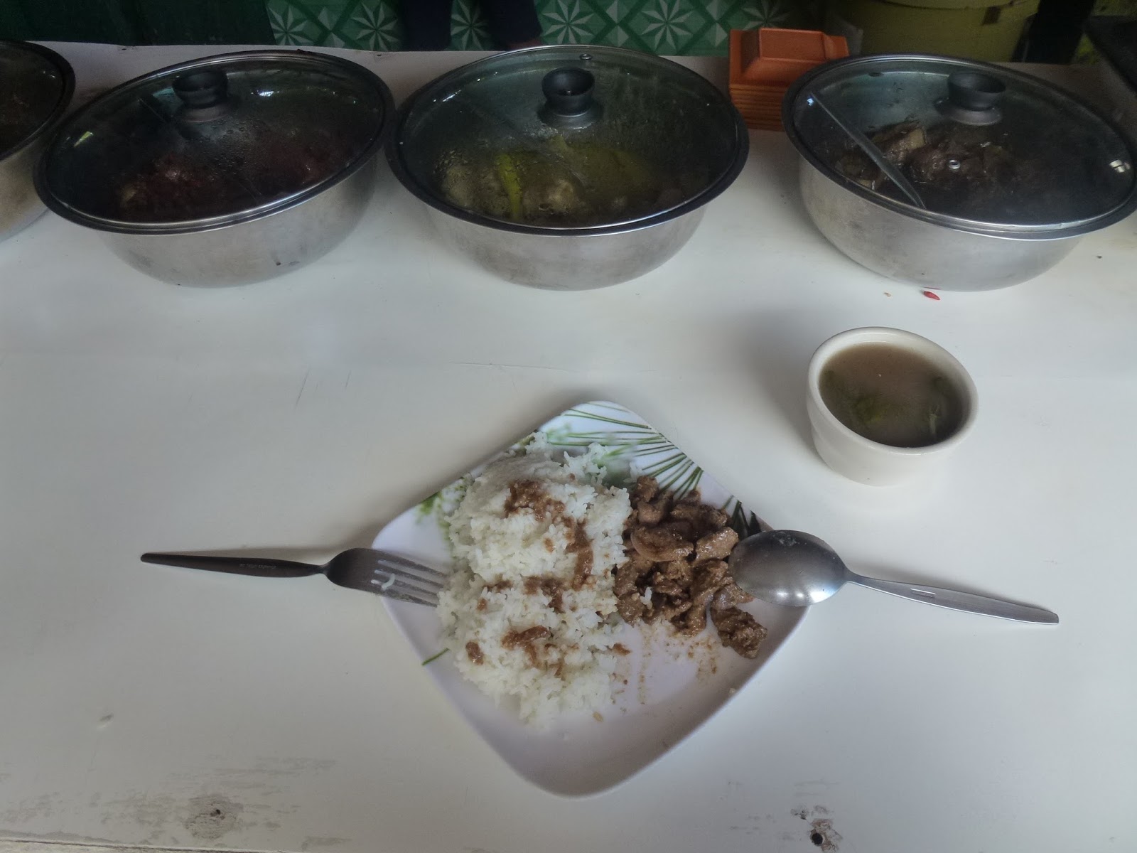 La comida local en este país tiene un punto y aparte. Para empezar los vegetarianos lo pasarían bastante mal aquí. Todo se reduce a calderetas con guisos, generalmente de cerdo y a veces de pollo, y le añades arroz. Y ya. Al ser este mi primer destino me pareció hasta buena. Me recordó incluso a la comida española -no sabía de lo que hablaba en ese momento obviamente…- De vez en cuando puedes encontrar noodles, grasientos y aceitosos como el resto de la comida del país.