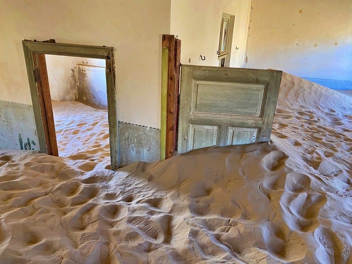 Es una locura cómo la arena del desierto ha devorado los edificios, con dunas en las mismísimas habitaciones.