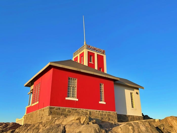 Pues tiburones no sé si habrá pero lo que está claro es que Shark Island no es una isla, sino una península de 1,7 km de largo por 0,33 km de ancho en la bahía de Luderitz perfecta para caminar disfrutando de sus vistas, su bonito faro y su puesta de sol.