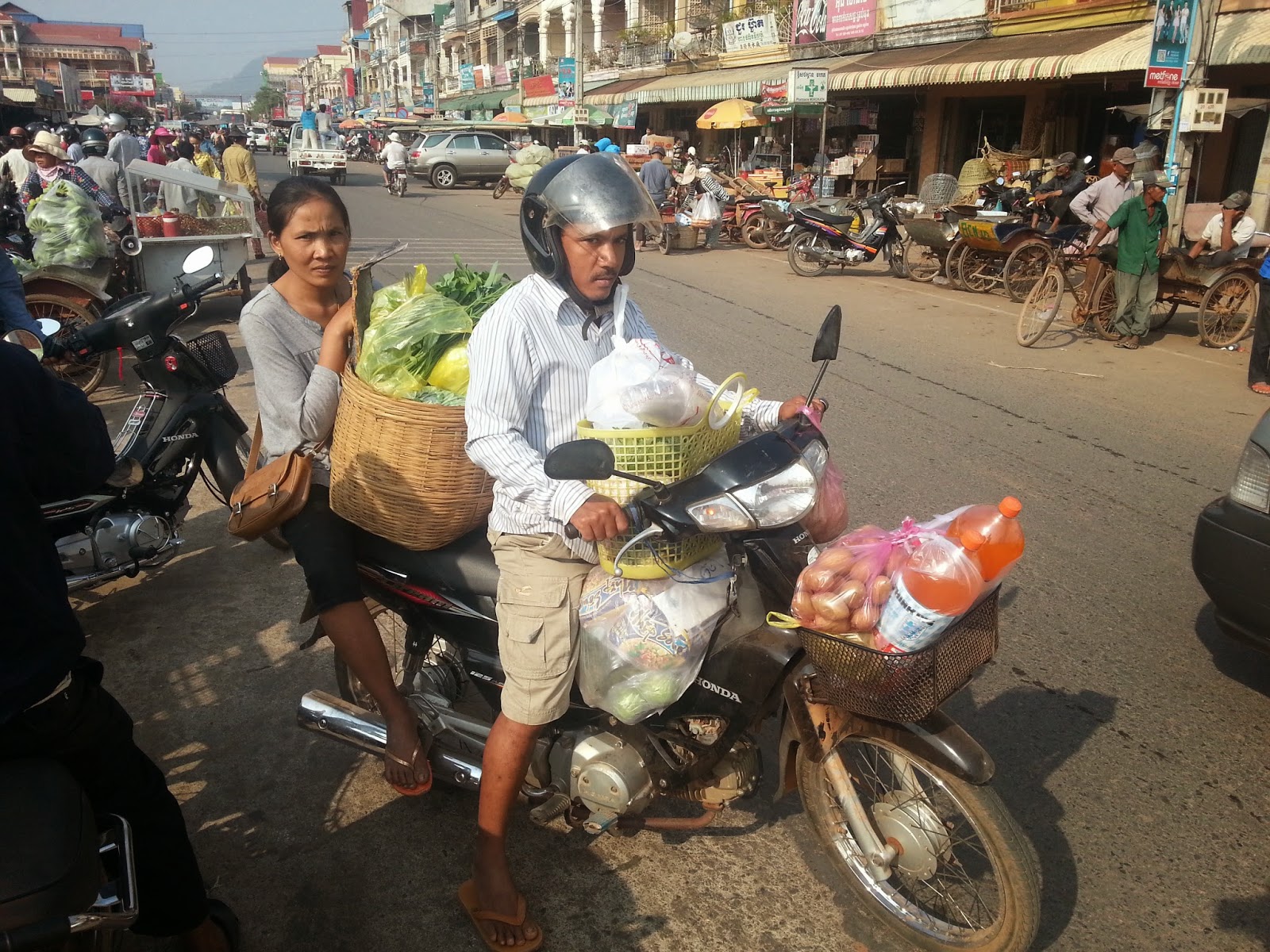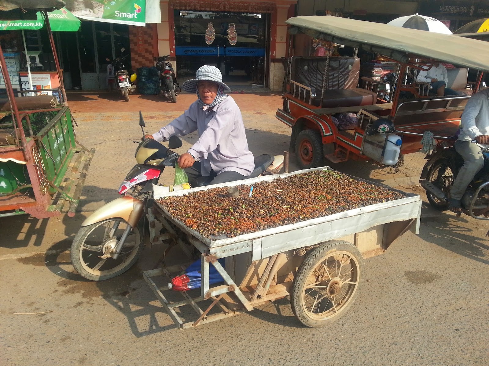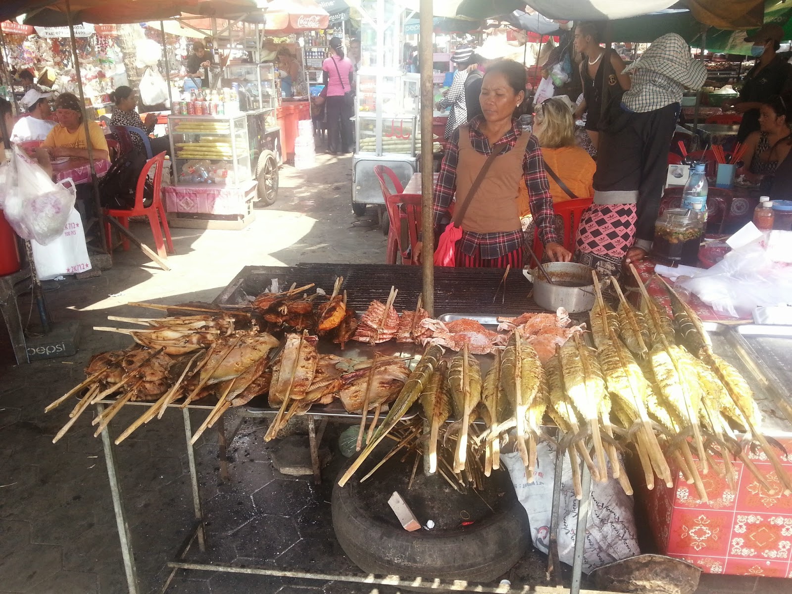 Kampot en sí mismo no tiene demasiado que ofrecer, quizás lo más recomendable es acercarse a la parte del río o perderse por el mercado de día y descubrir que puedes cortarte el pelo con el olor de los pescados del puesto de al lado mientras una señora vende cientos de pollos descabezados y otros animales hacinados pero todavía vivos. Uno se empieza a acostumbrar a ver este tipo de cosas, ¡pero no por eso me va a dejar de sorprender!