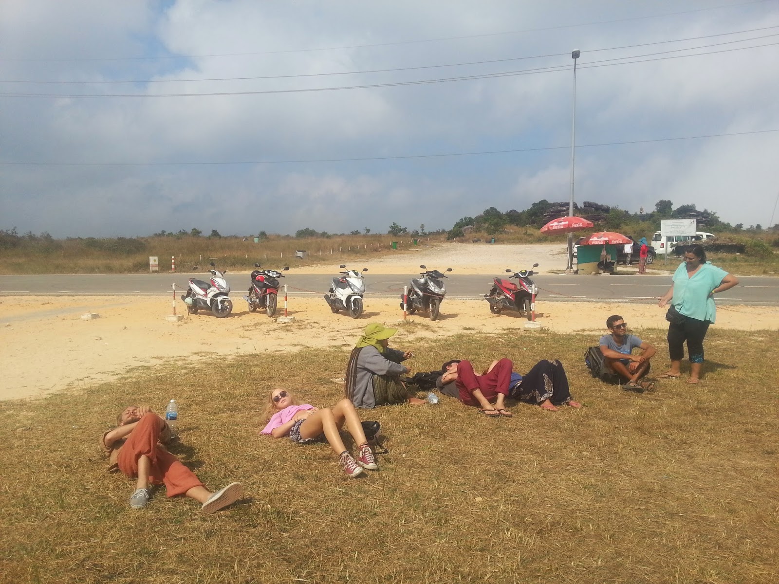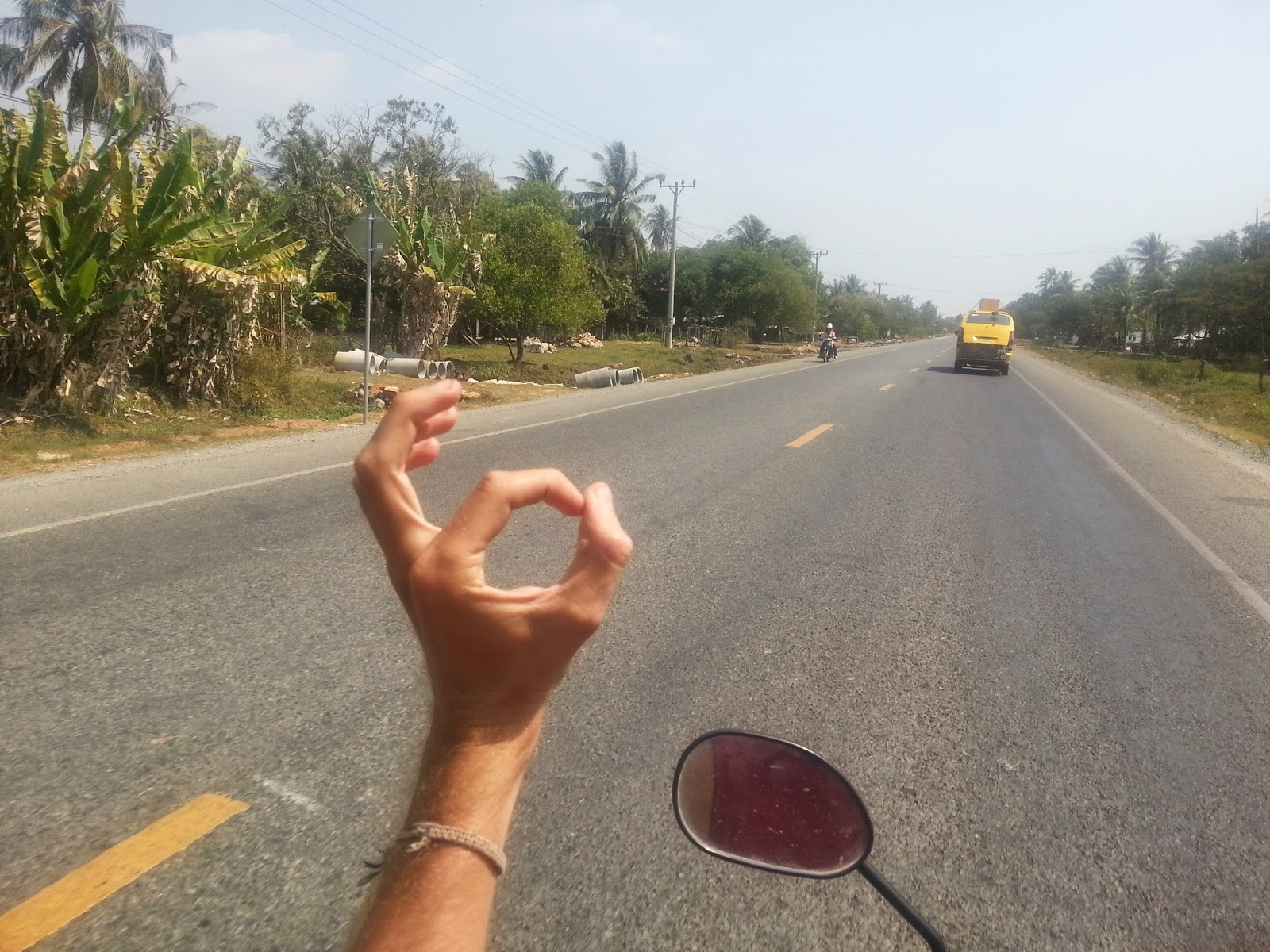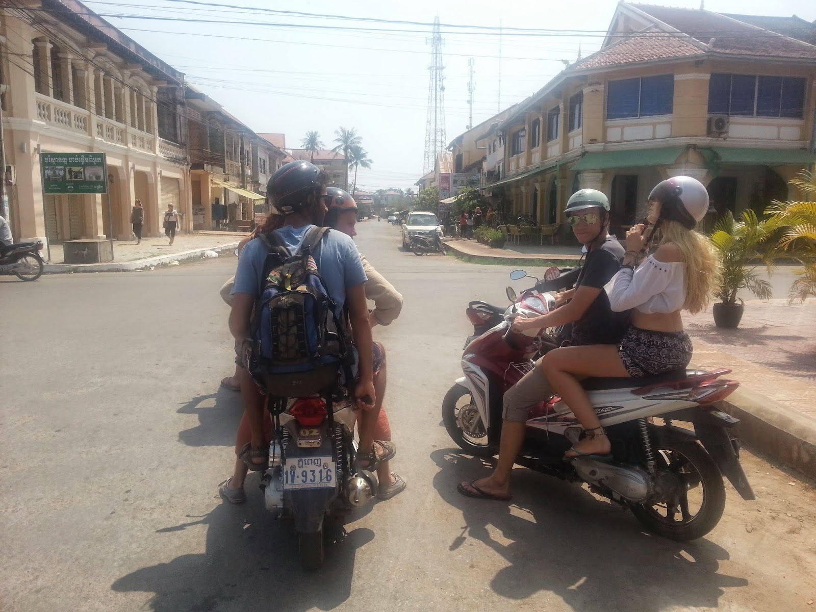 Como me robaron mi mochila en Phnom Penh yo seguía viajando sin ningún tipo de documentación, y para alquilar una moto es necesario dejar el pasaporte como fianza. Personalmente no me siento muy cómodo con ello, pero es la única forma de que te alquilen una moto en estos países. Lo que hice fue compartir la moto con Layla y, junto con Lili, dos suecos, dos inglesas y un israelí nos pusimos en marcha. ¡On the road!