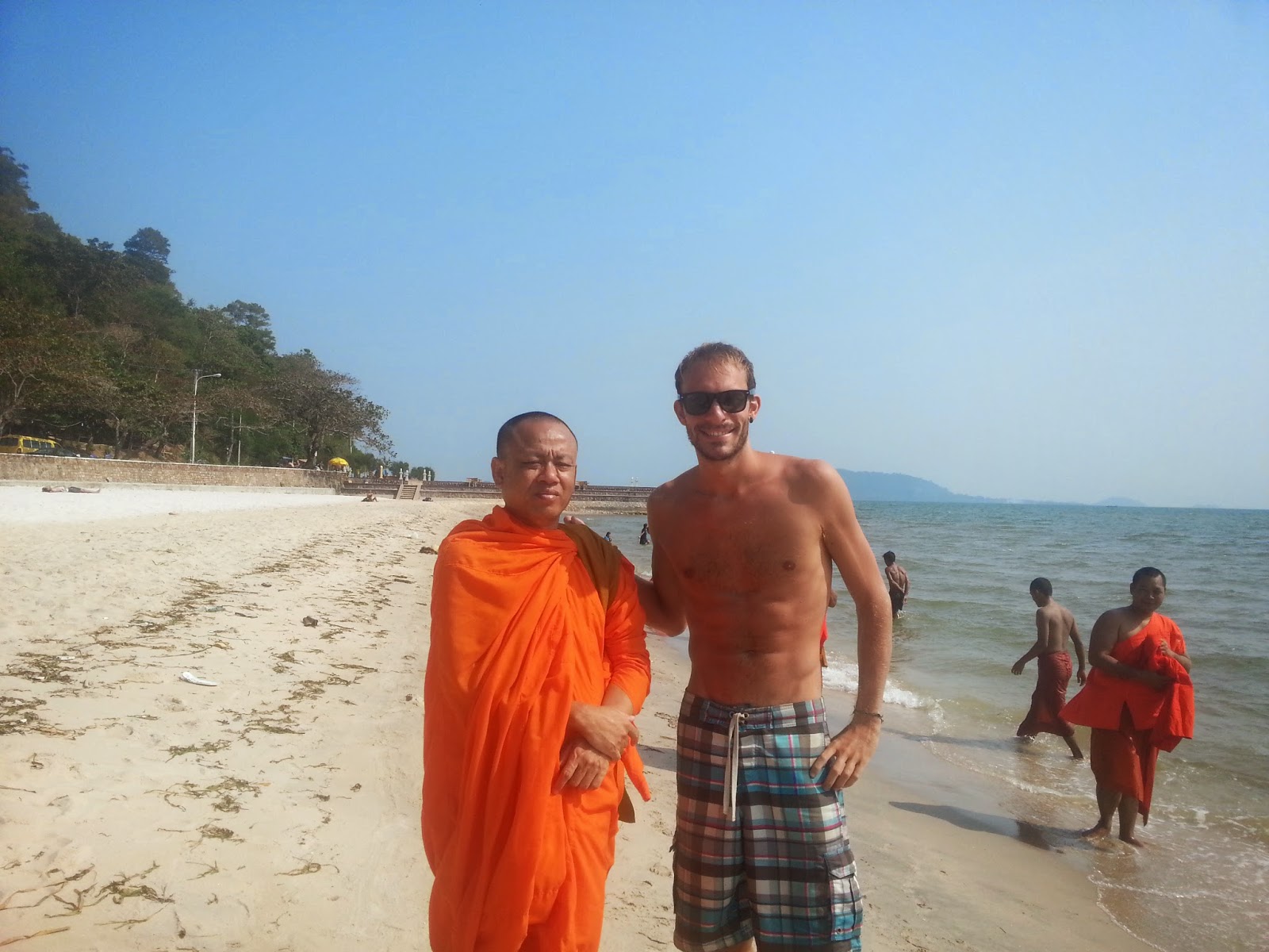 Como curiosidad, conocí a unos monjes y compartimos anécdotas de nuestros países y creencias, y el mayor de ellos me contó que nunca en toda su vida se había metido en el mar. ¡Y vive al lado! De la playa pasamos a unas hamacas y a la playa de nuevo a ver el atardecer. Cero estrés como puedes ver.