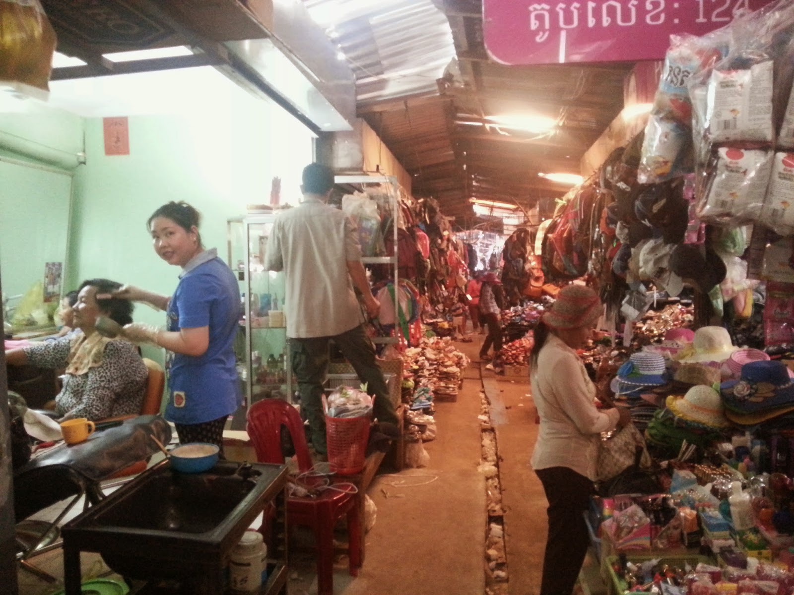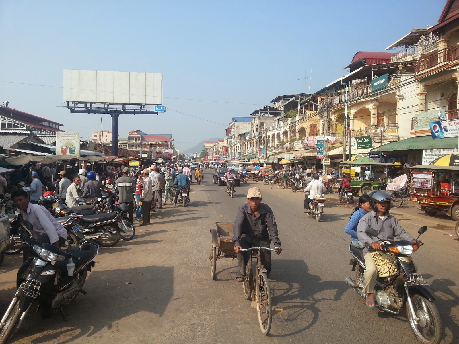 Kampot en sí mismo no tiene demasiado que ofrecer, quizás lo más recomendable es acercarse a la parte del río o perderse por el mercado de día y descubrir que puedes cortarte el pelo con el olor de los pescados del puesto de al lado mientras una señora vende cientos de pollos descabezados y otros animales hacinados pero todavía vivos. Uno se empieza a acostumbrar a ver este tipo de cosas, ¡pero no por eso me va a dejar de sorprender!