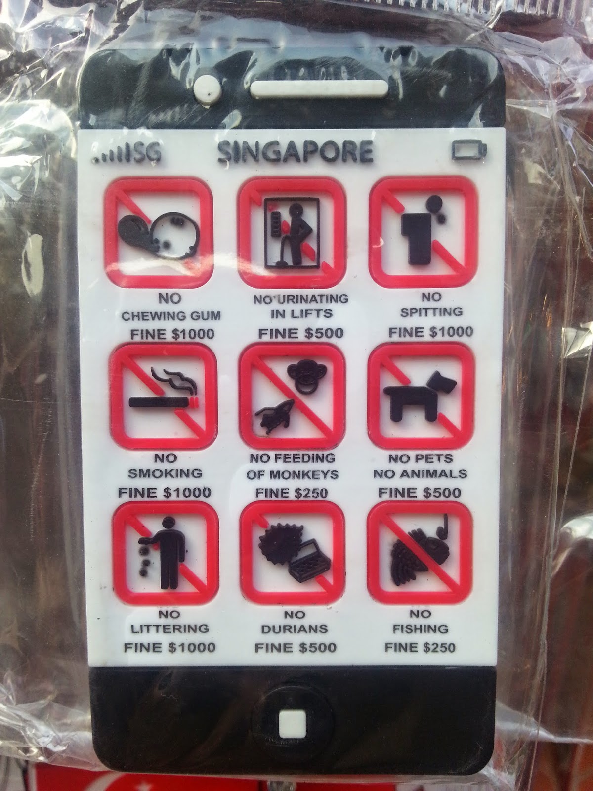 Pero cuidado que te puede salir muy caro. Está prohibido, por ejemplo, comer chicle (como oyes), escupir o comer y beber en los transportes. Están obsesionados con la limpieza, y la verdad que la ciudad está impecable. Aquí un souvenir con algunas de las multas.