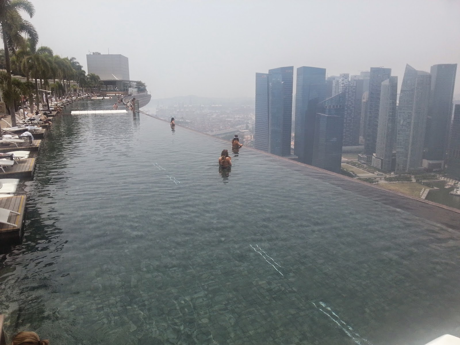 Una cosa subir al bar del increíble hotel Marina Bay y ver su impresionante piscina cuesta ahora 23$…:(