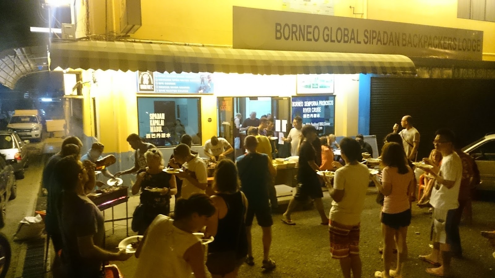 Semporna es el lugar donde la mayoría hace base para bucear o visitar las islas cercanas. La isla de Mabul es el otro sitio donde poder alojarte, pero más caro. Yo estuve ayudando casi un mes en Borneo Global Backpackers Sipadan. Lo más económico de la ciudad y un ambiente genial. 27 RM el dorm y no te obligan a contratar paquetes de buceo. Si quieres ir un día a Sipadan solamente puedes hacerlo. Todas las noches íbamos con los clientes a cenar y hacíamos barbacoas o actividades en el hostal.