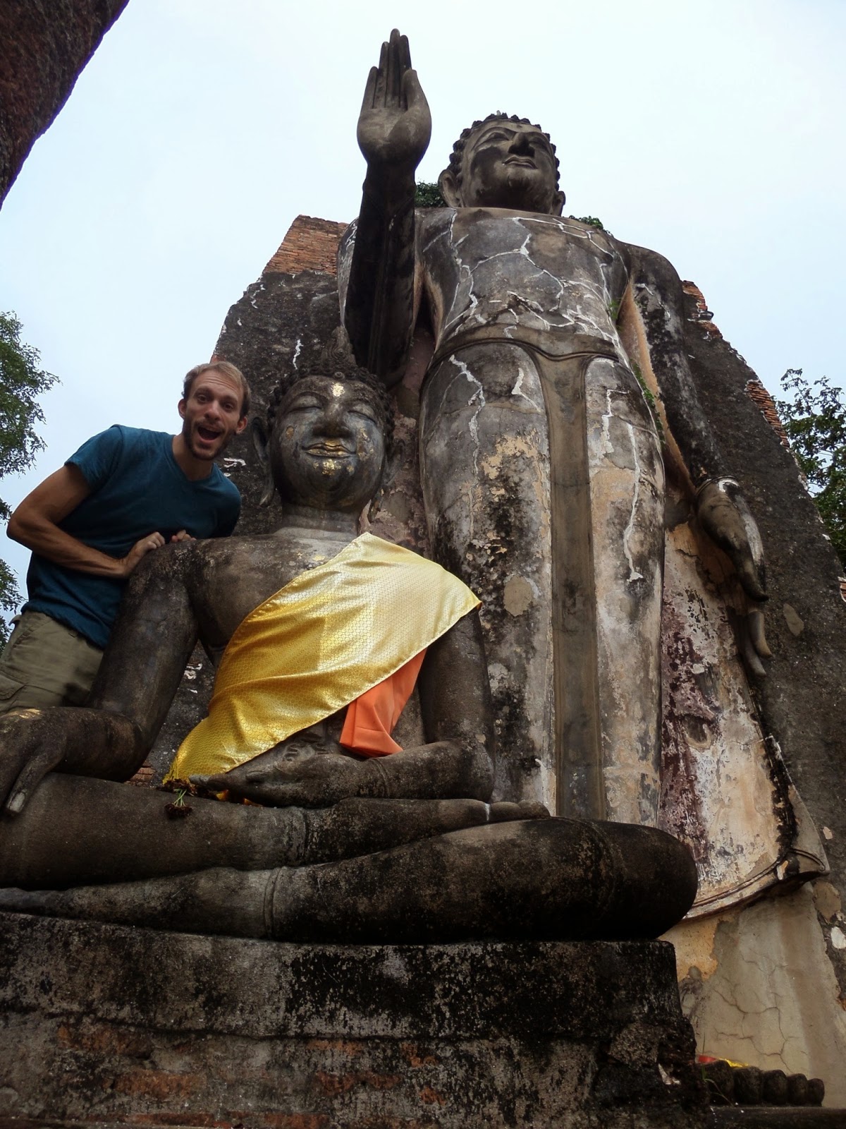 Sukhothai, fundada en el siglo XIII, conserva ruinas de templos y Buddhas intactos de la época. Patrimonio de la Humanidad por la Unesco desde 1.991, la ciudad está dividida en 3 partes, y para entrar en cada una de ellas hay que pagar 100 baths. Es muy fácil entrar sin pagar, simplemente con un poco de astucia. Yo me ahorré los 3 tickets :)
