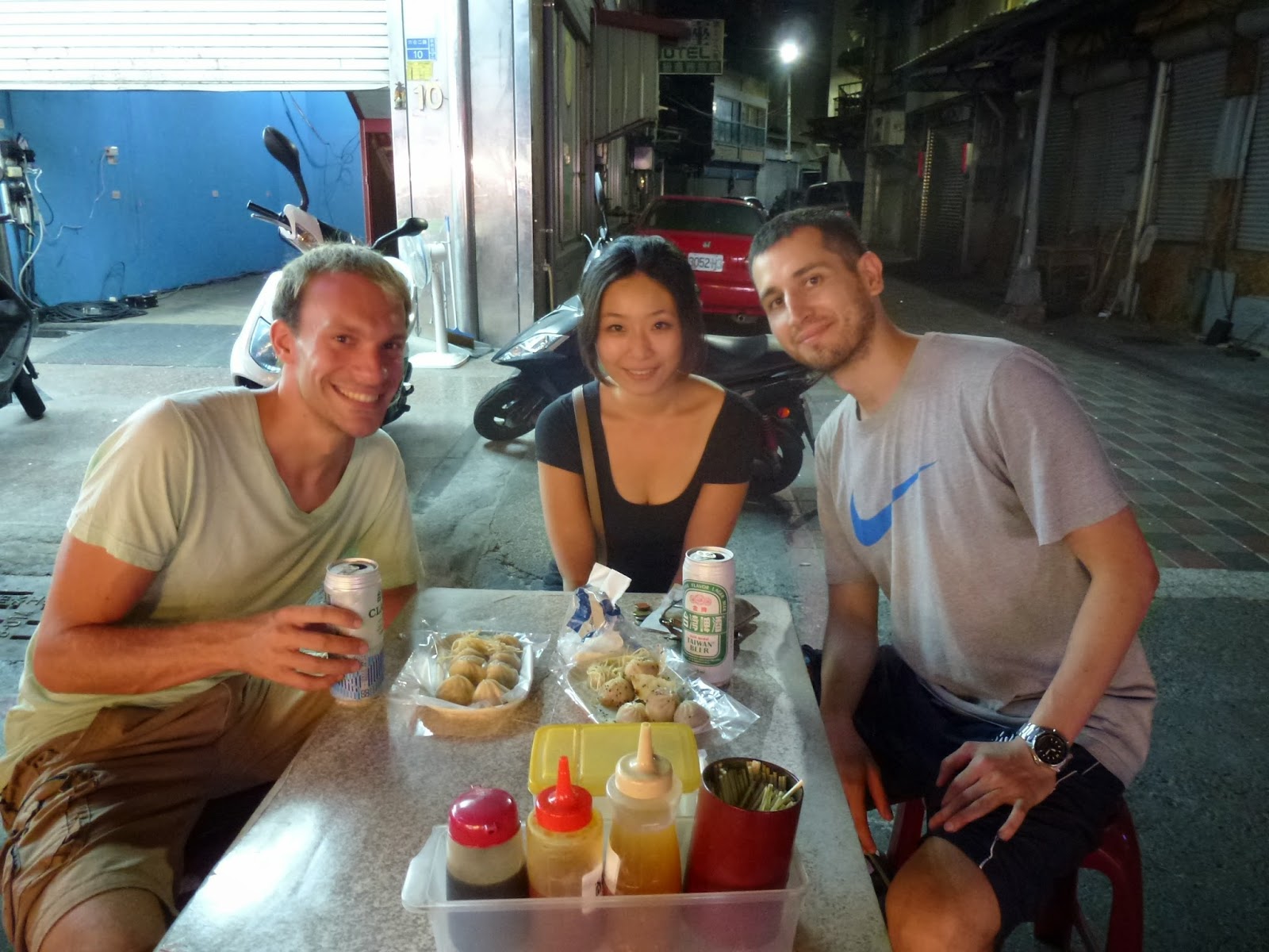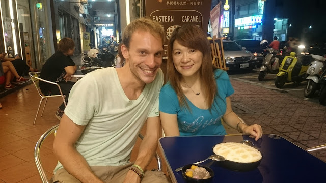 Esa misma noche Ed me enseñaría varios lugares interesantes de la ciudad e iríamos, junto con su novia taiwanesa, a cenar al Liuhe Night Market. No pudieron faltar diferentes tipos de Dumplings y una especie de tortilla/crepe con salsa de ostras típico del país. Otro día tuve la oportunidad de quedar con Sandy, una chica local que no pudo alojarme por Couchsurfing pero que me llevó al Rui Feng Night Market a probar platos diferentes, cada cual más raro, hasta no poder más. Luego a tomar unas copas para bajar la comida :)