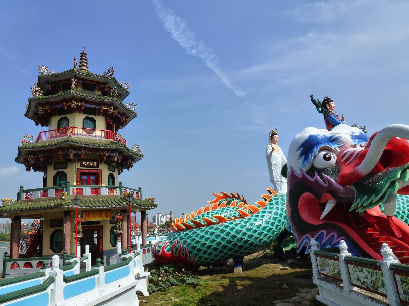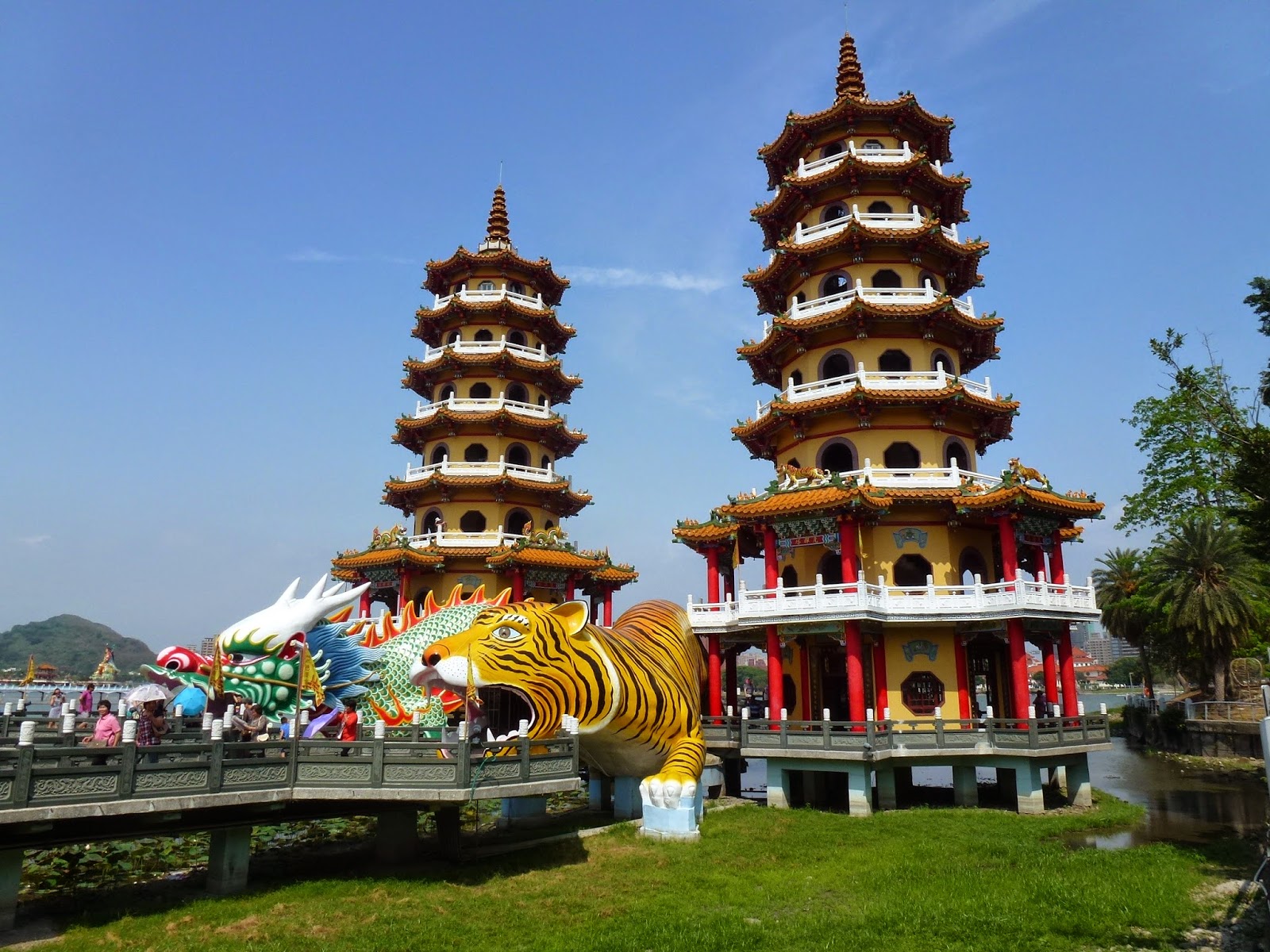 Un poco más alejado del centro se encuentra el Lago Lotus, con varios templos la mar de curiosos y figuras peculiares de unos tamaños desproporcionados. El más famoso es la Pagoda del Tigre y el Dragón. No se estrujaron mucho la cabeza con el nombre viendo las fotografías, ¿verdad?