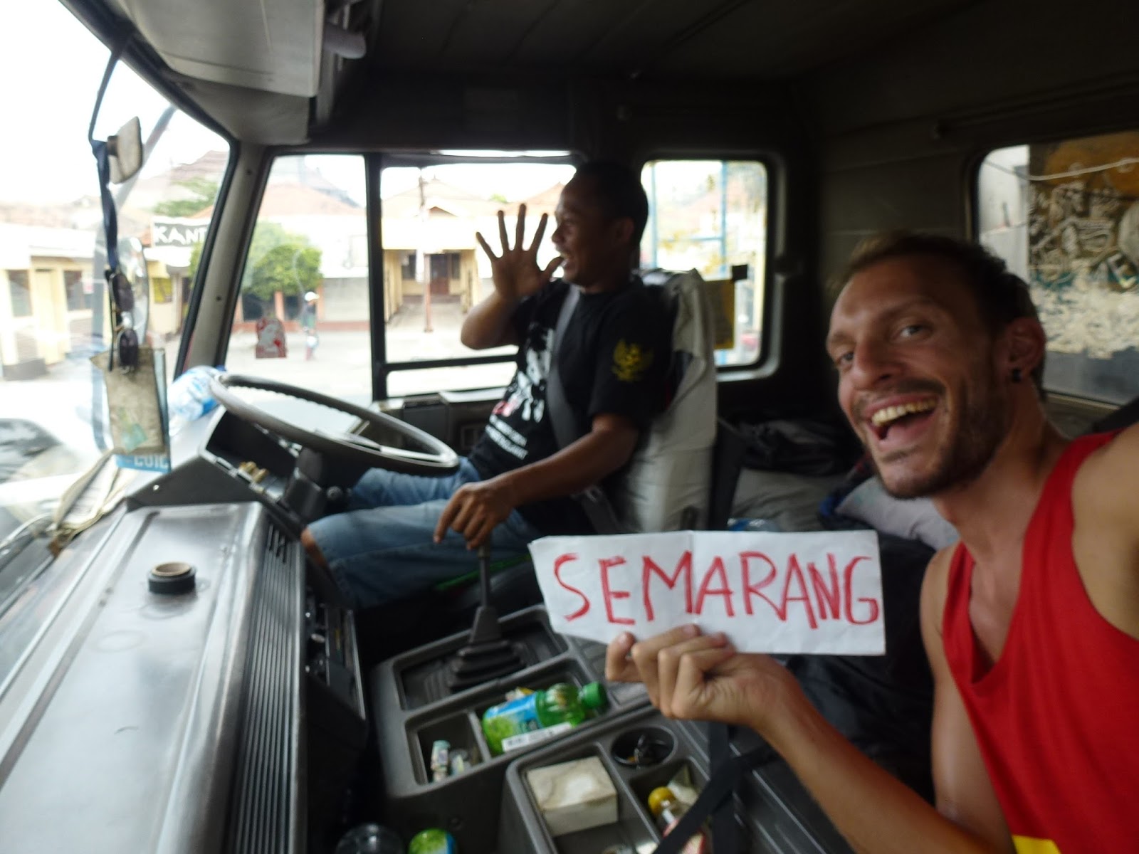 Pulgar para arriba, o mejor dicho cartel en alto, y haciendo autostop subido en coches, camiones y hasta una moto, llegaría hasta Jepara, toda una sorpresa donde el turista todavía no ha llegado.