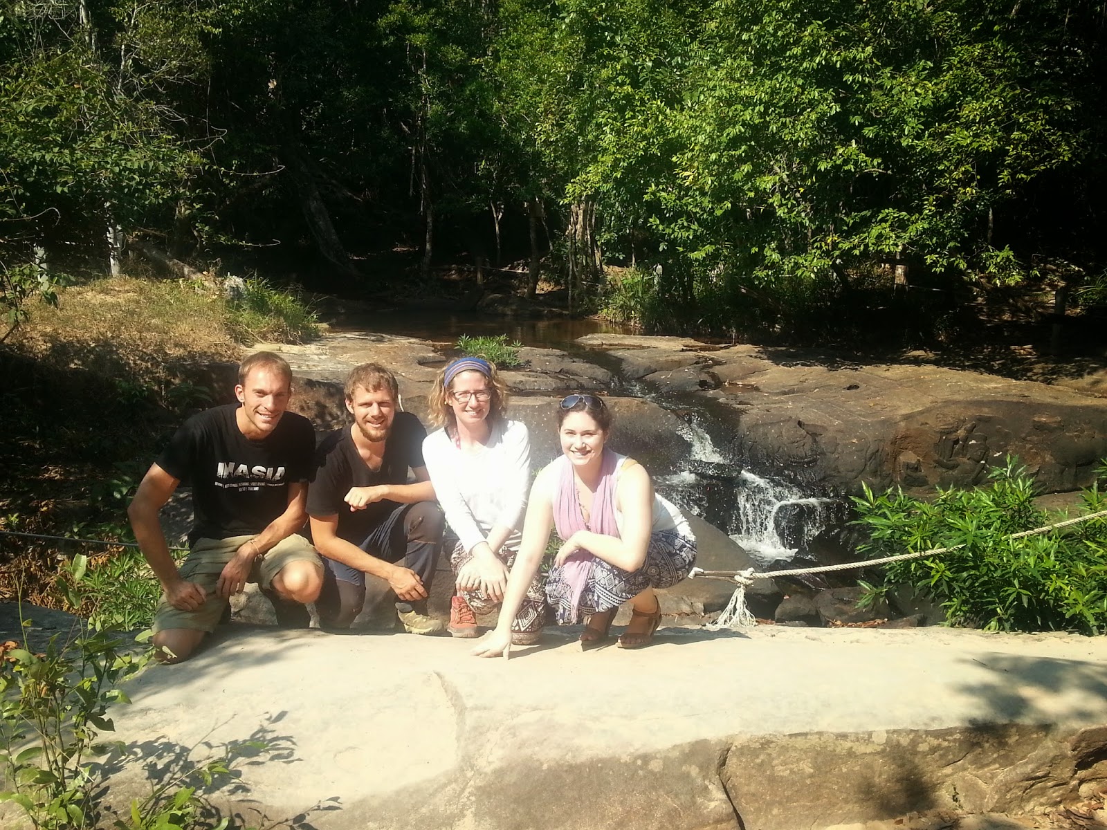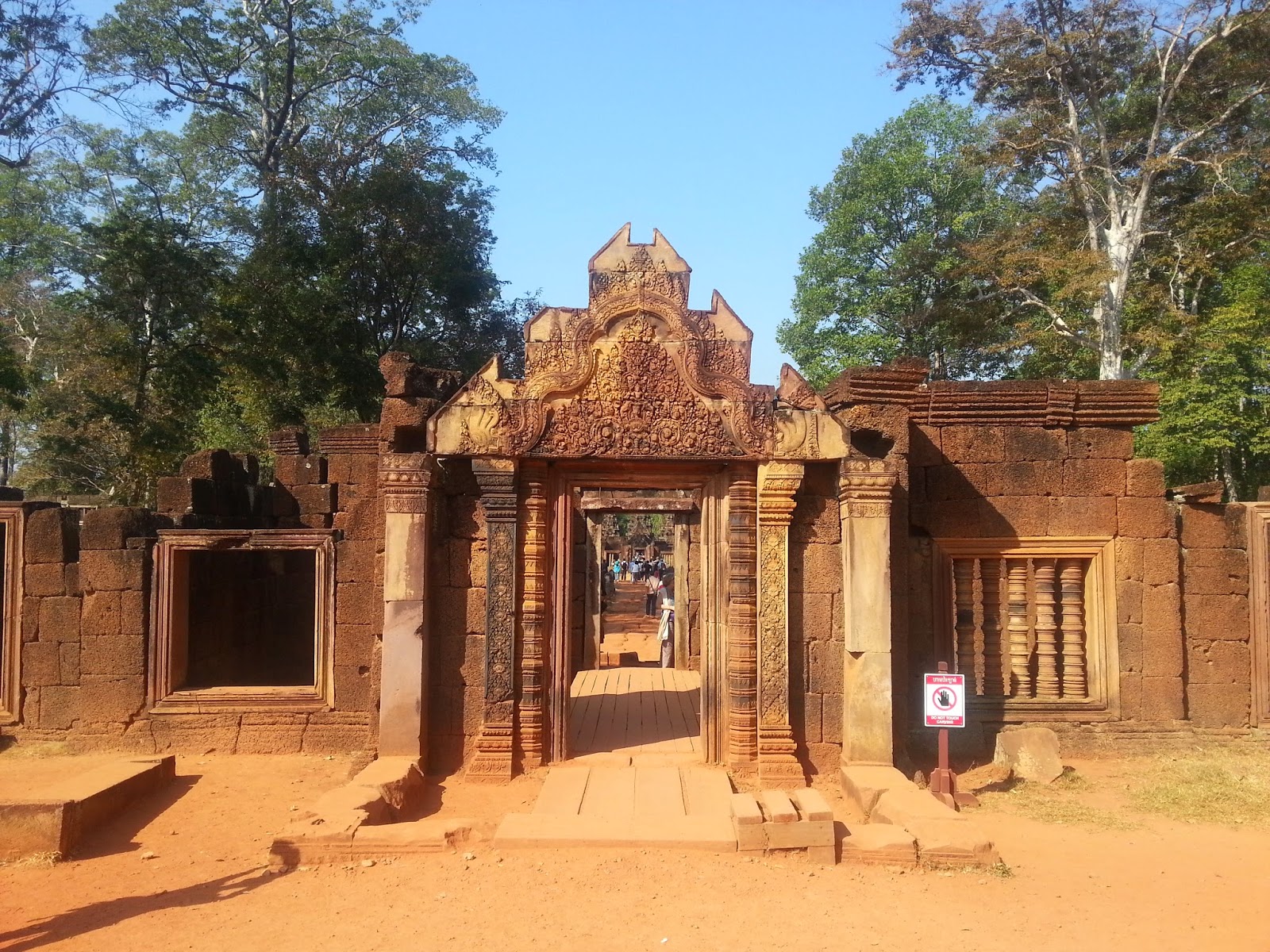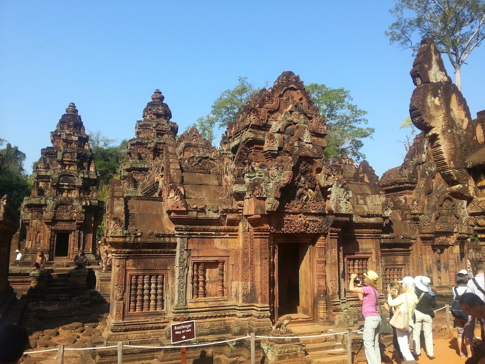 El tercer día fui junto con Richelle y una pareja de americanos a Banteay Srei -siglo X-, el templo a las afueras más interesante, que tiene la peculiaridad de sus tonos rojizos en la piedra, y a ver una cascada y las figuras talladas en un río a Kbal Spean, a 25 km de Siem Reap. Para variar de tanto templo nos vino perfecto.